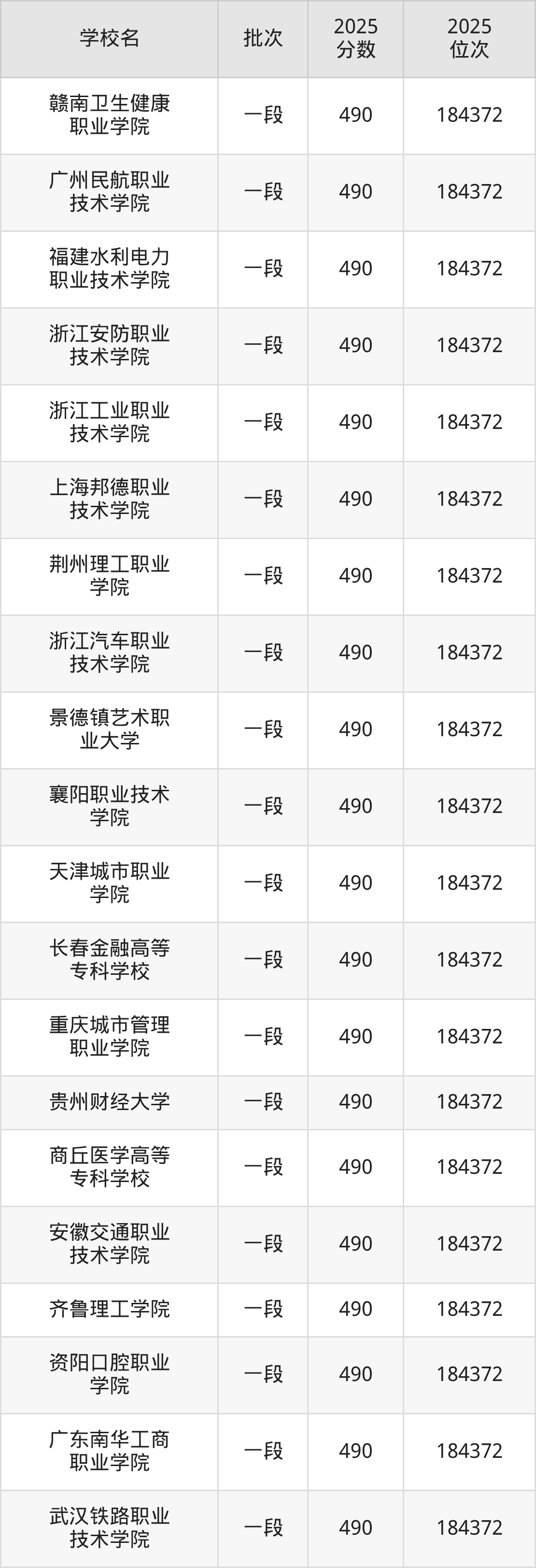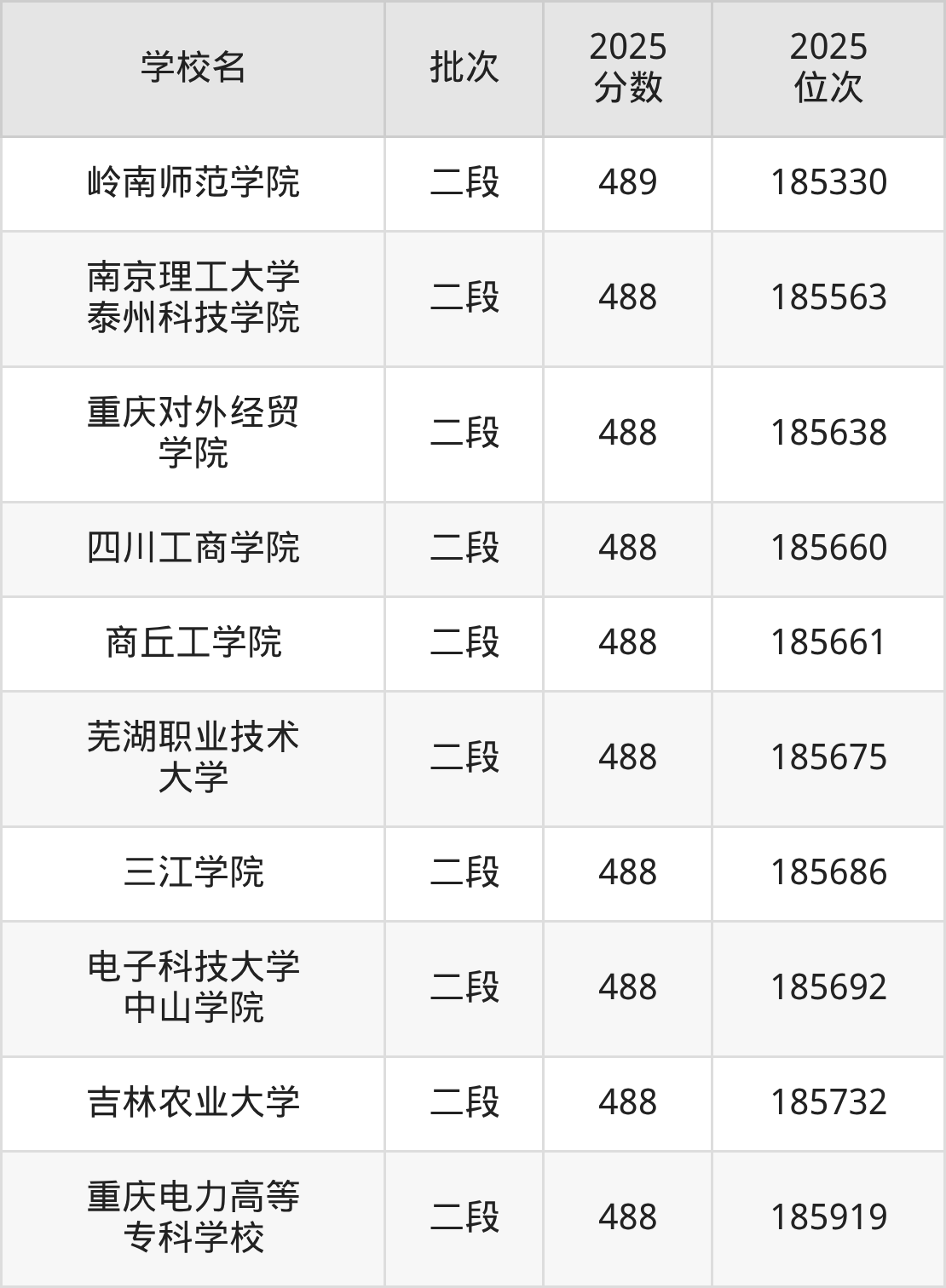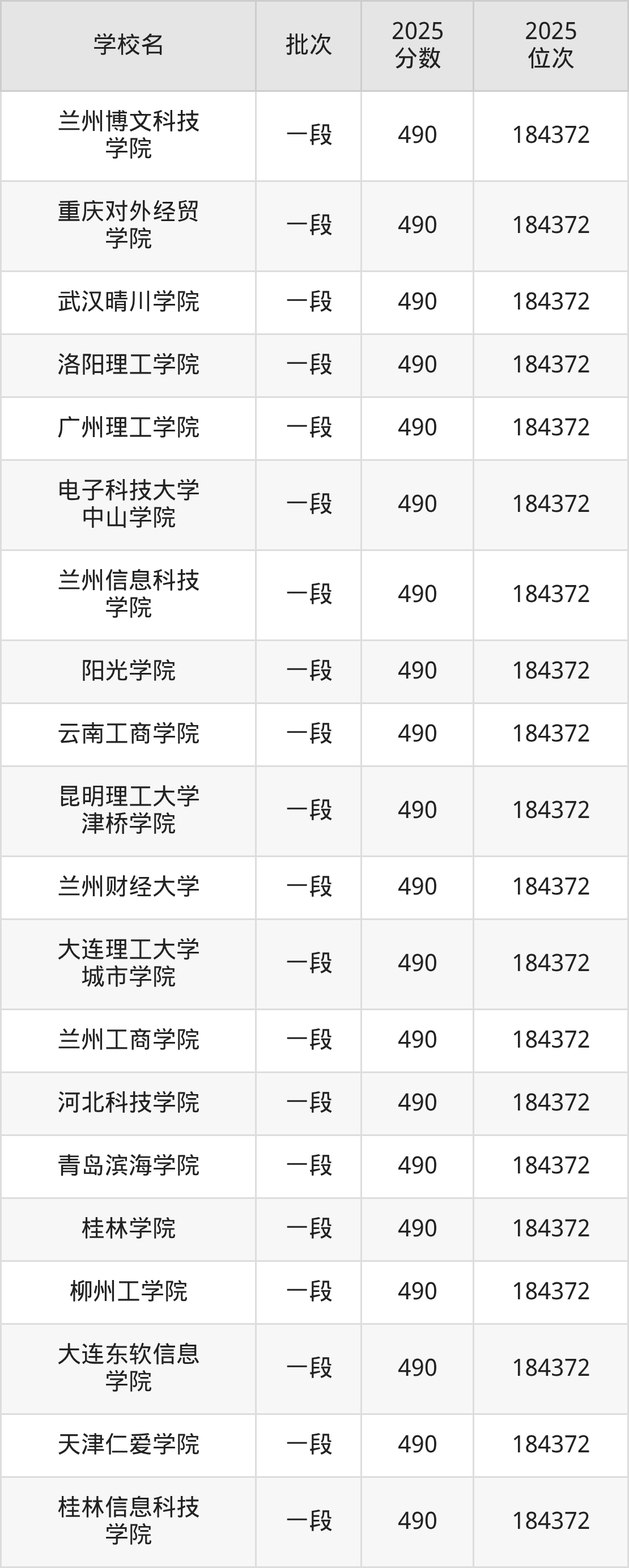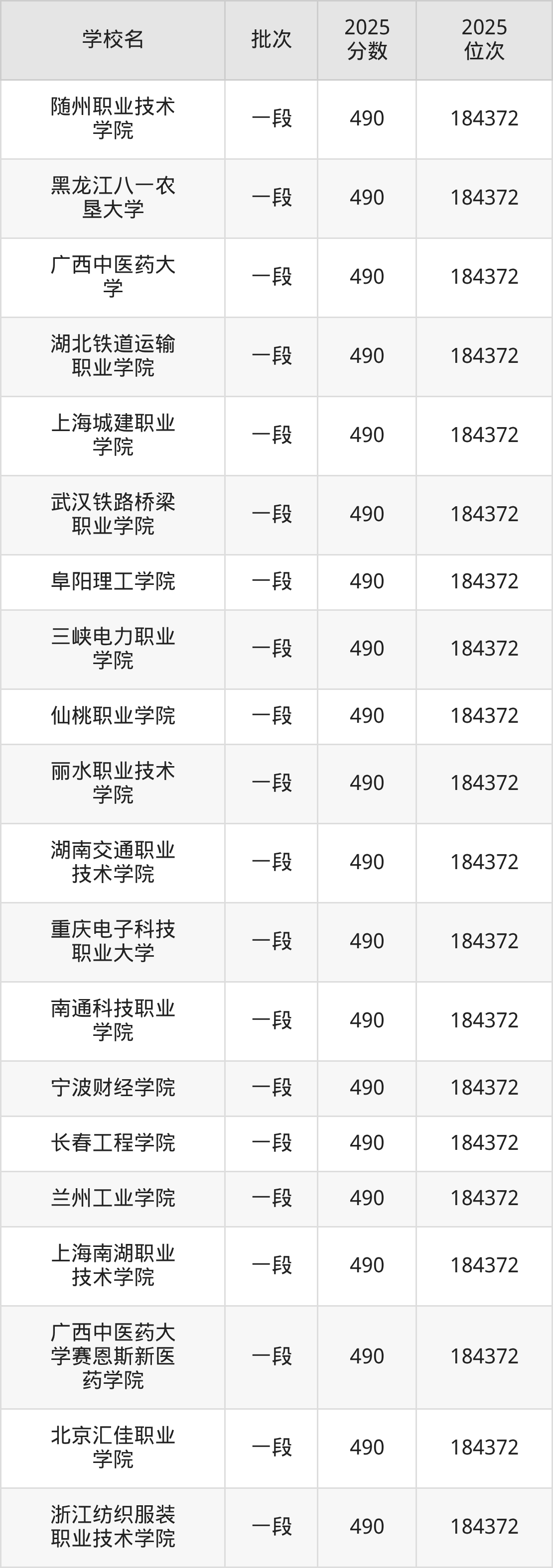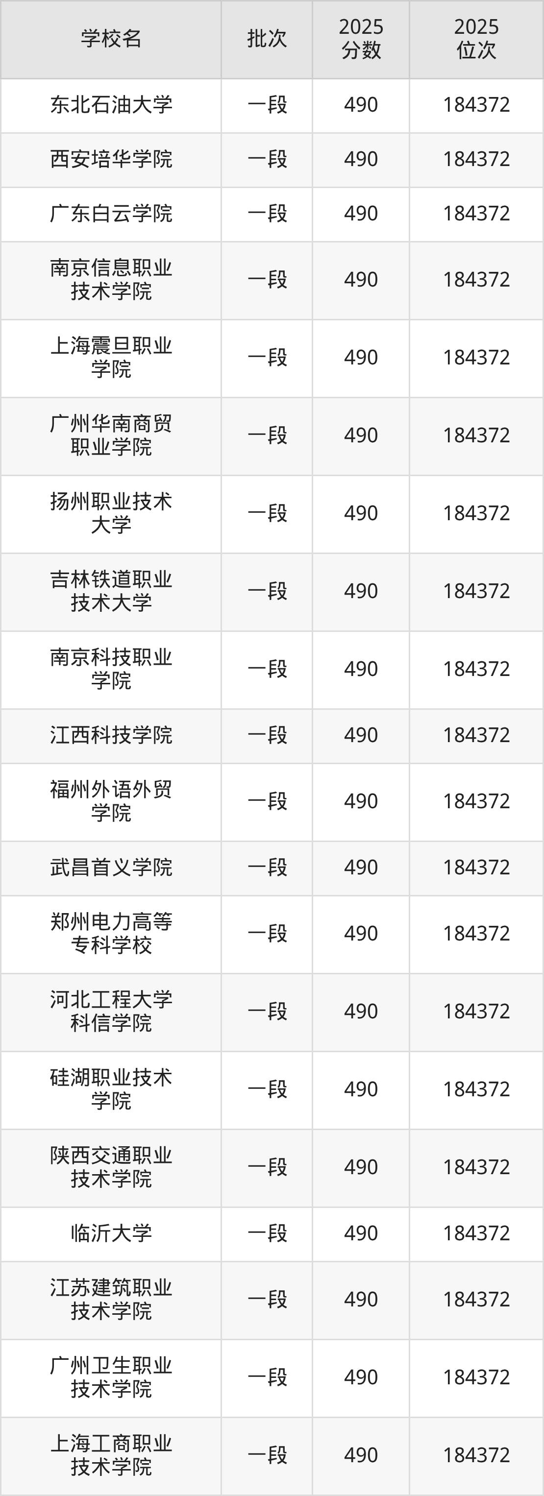 这些都是2026年高考184373名~185464名考生可以报考的大学,更多学校名单如下表所示: