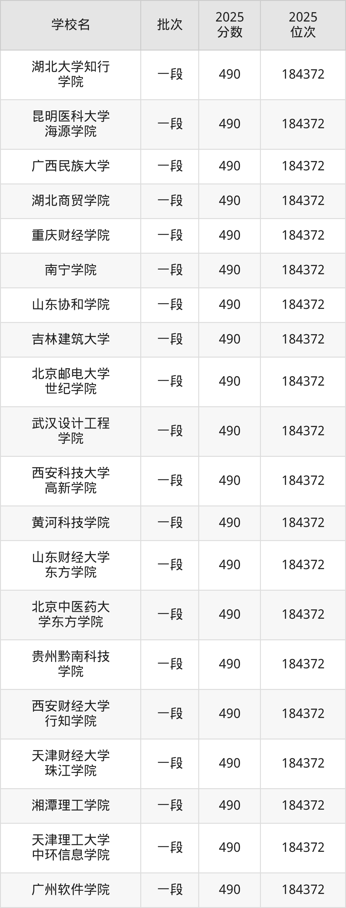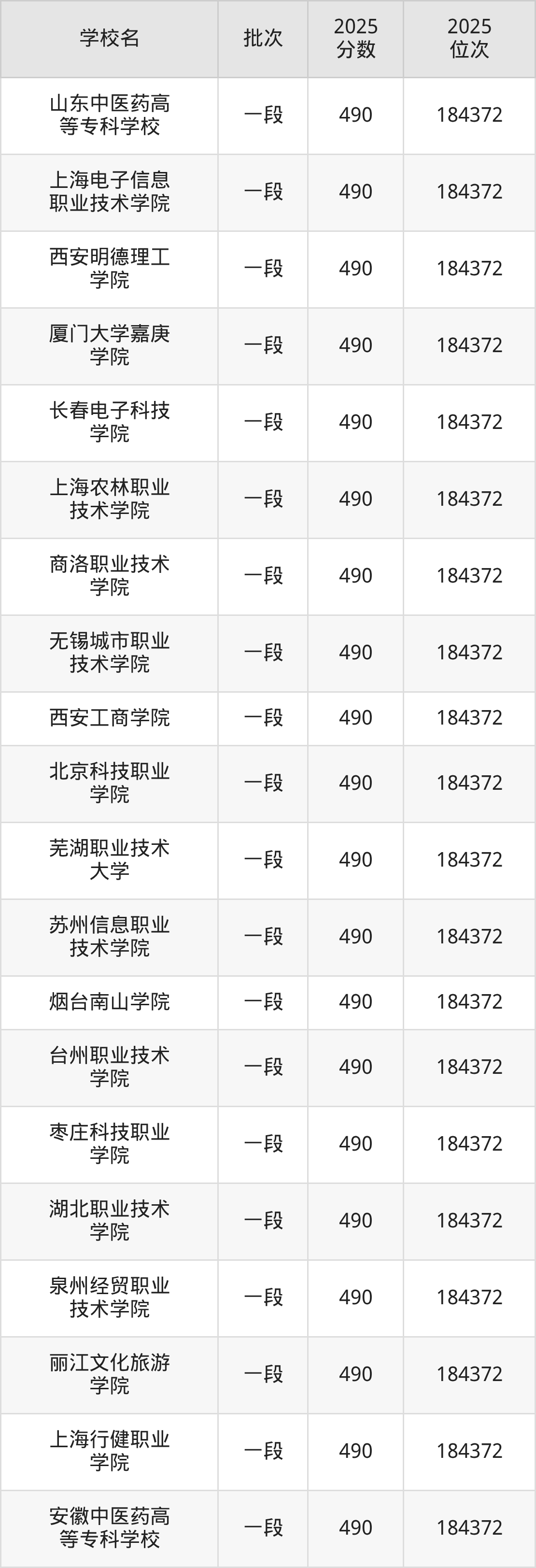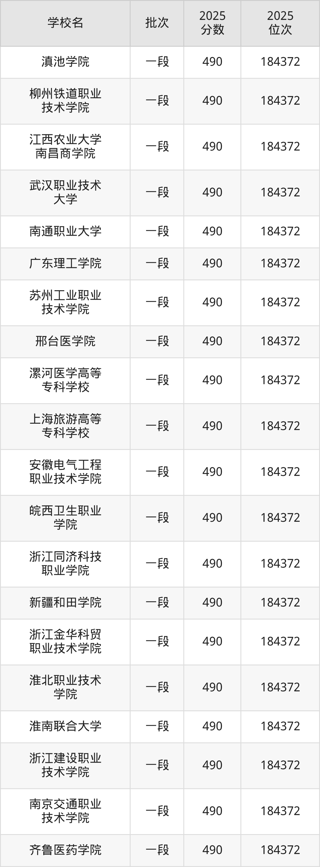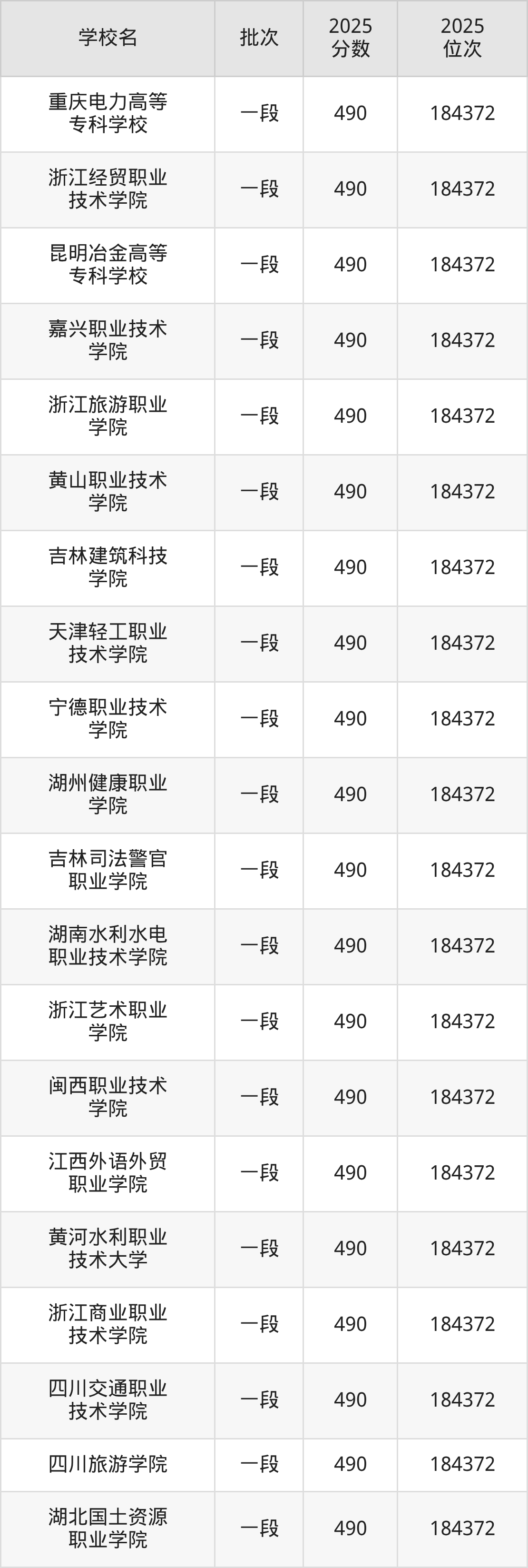 这些都是2026年高考184373名~185464名考生可以报考的大学,更多学校名单如下表所示: