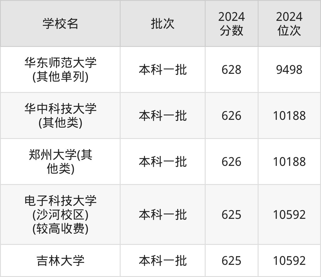 2024年河南高考理科626分(9840名~10188名)能上的大学有华中科技大学(其他类)、郑州大学(其他类)。