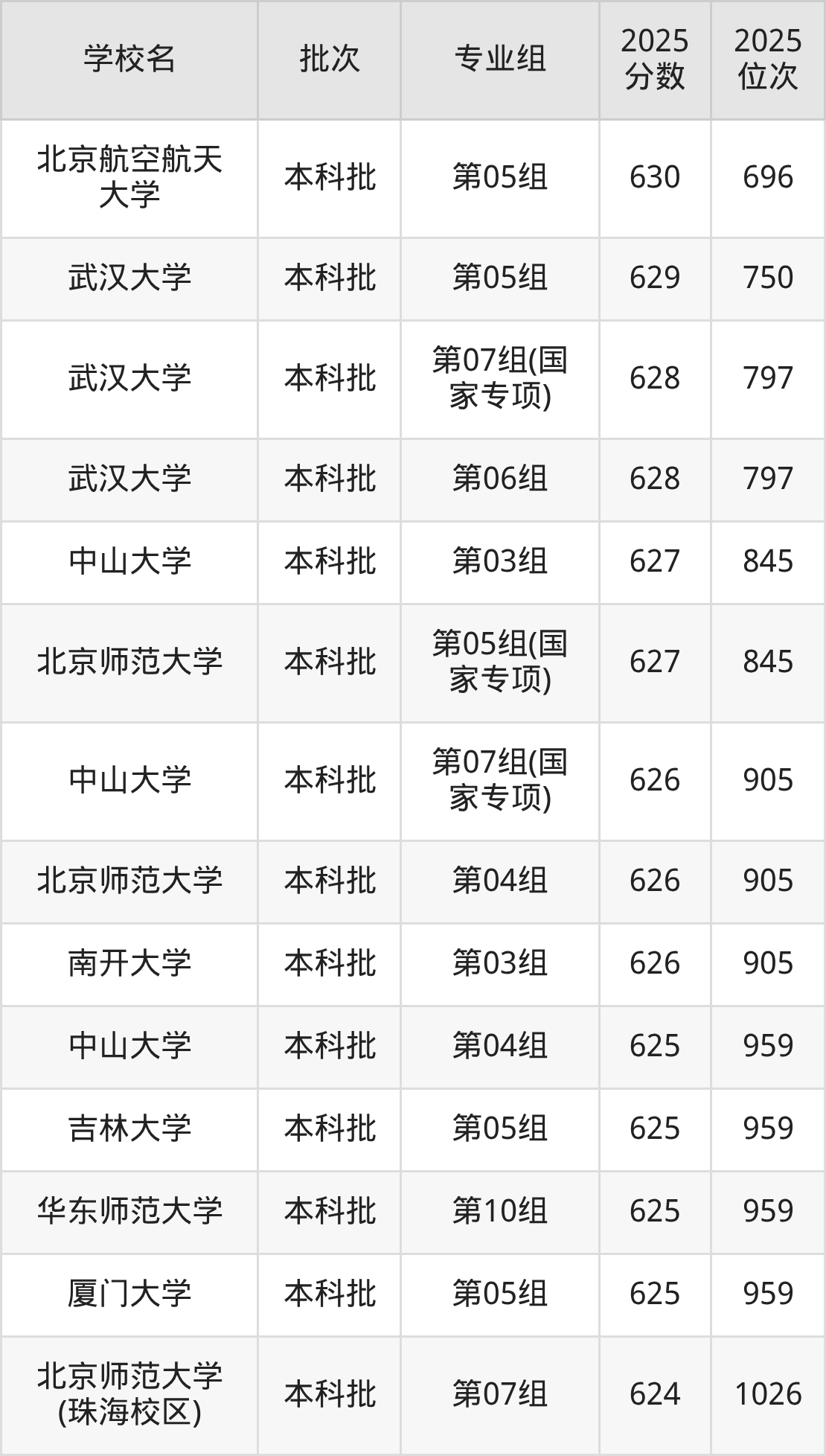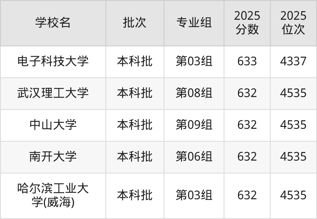2025年湖北高考历史类634分(504名~535名)录取位次低于该区间(较稳妥)的有北京航空航天大学第05组(696名)、北京师范大学第03组(696名)等;录取位次高于该区间(可冲)的有同济大学第03组(503名)、中国政法大学第05组(442名)等。