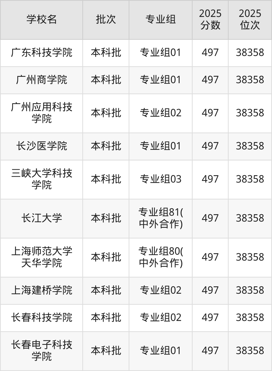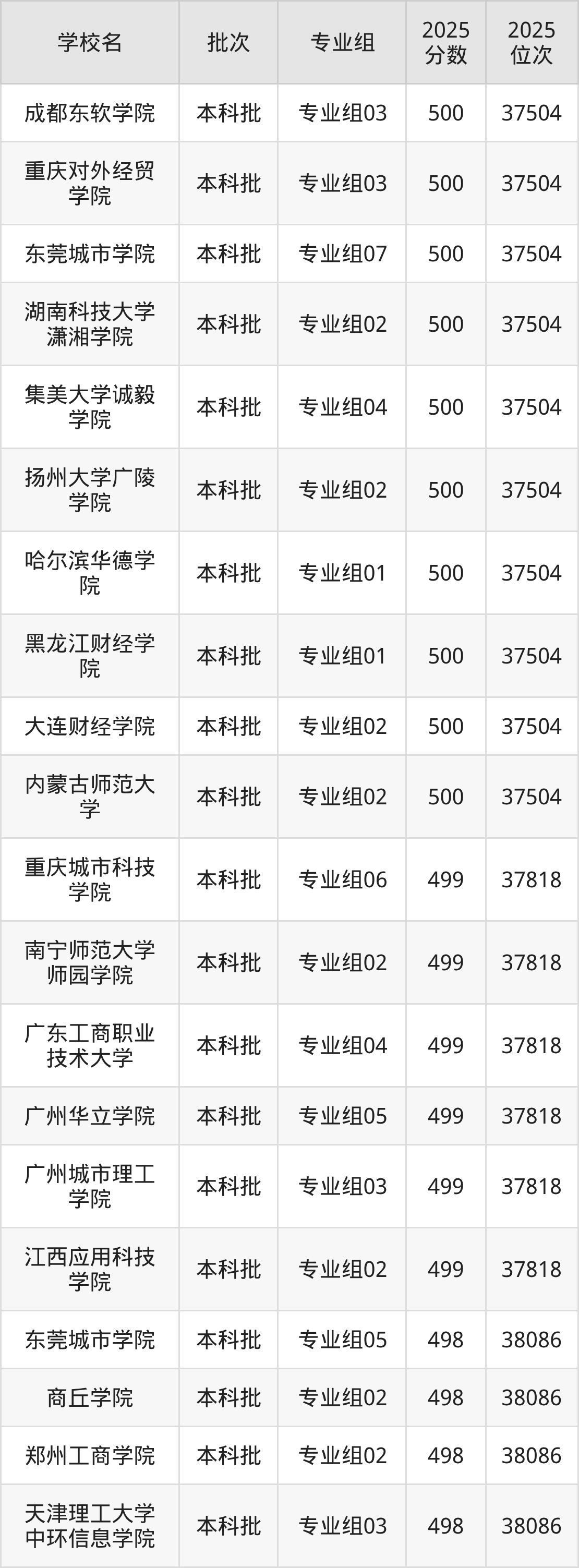 这些都是2026年高考37819名~38086名考生可以报考的大学,更多学校名单如下表所示: