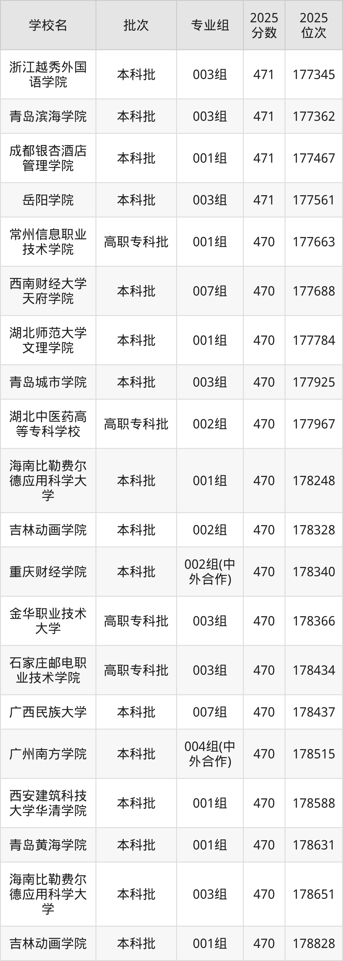 2025年安徽高考物理类470分(177598名~179032名)能上的大学有重庆财经学院002组(中外合作)、广西民族大学007组、广州南方学院004组(中外合作)、海南比勒费尔德应用科学大学001组等。