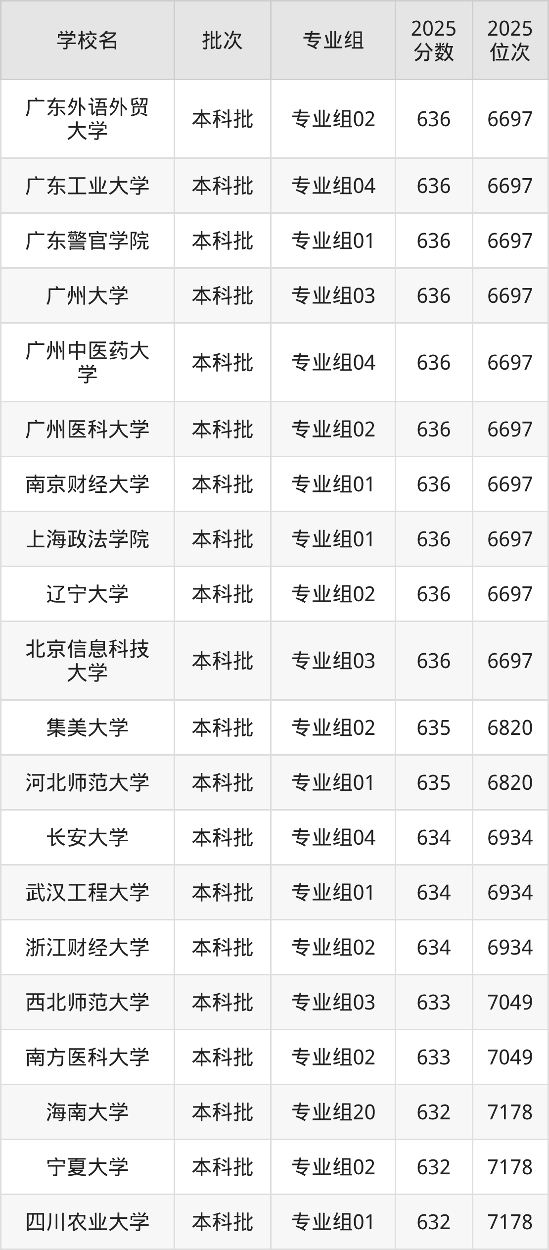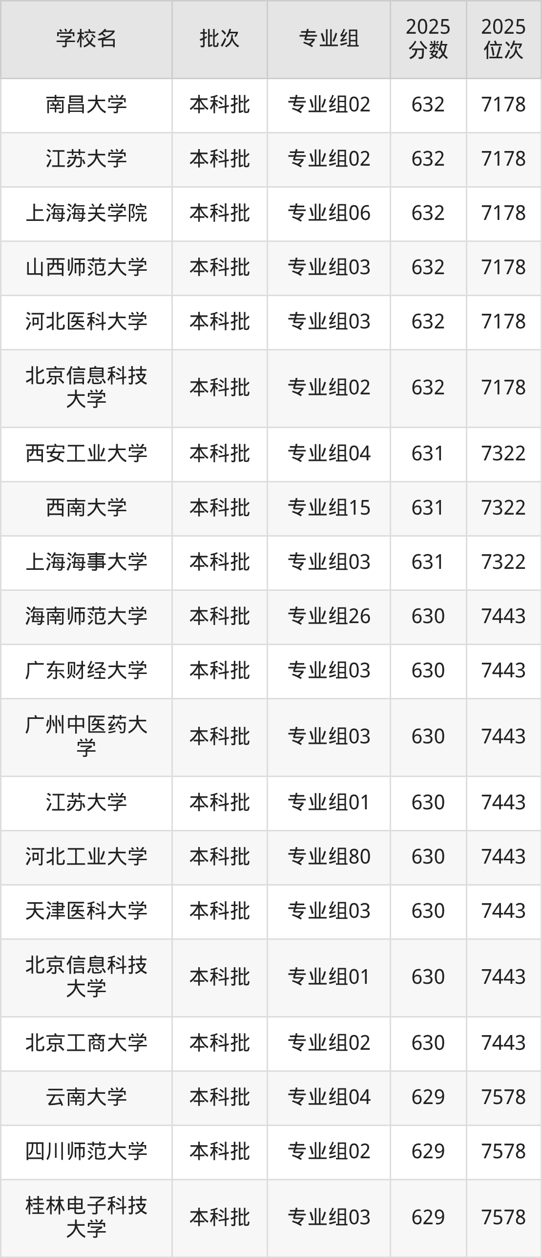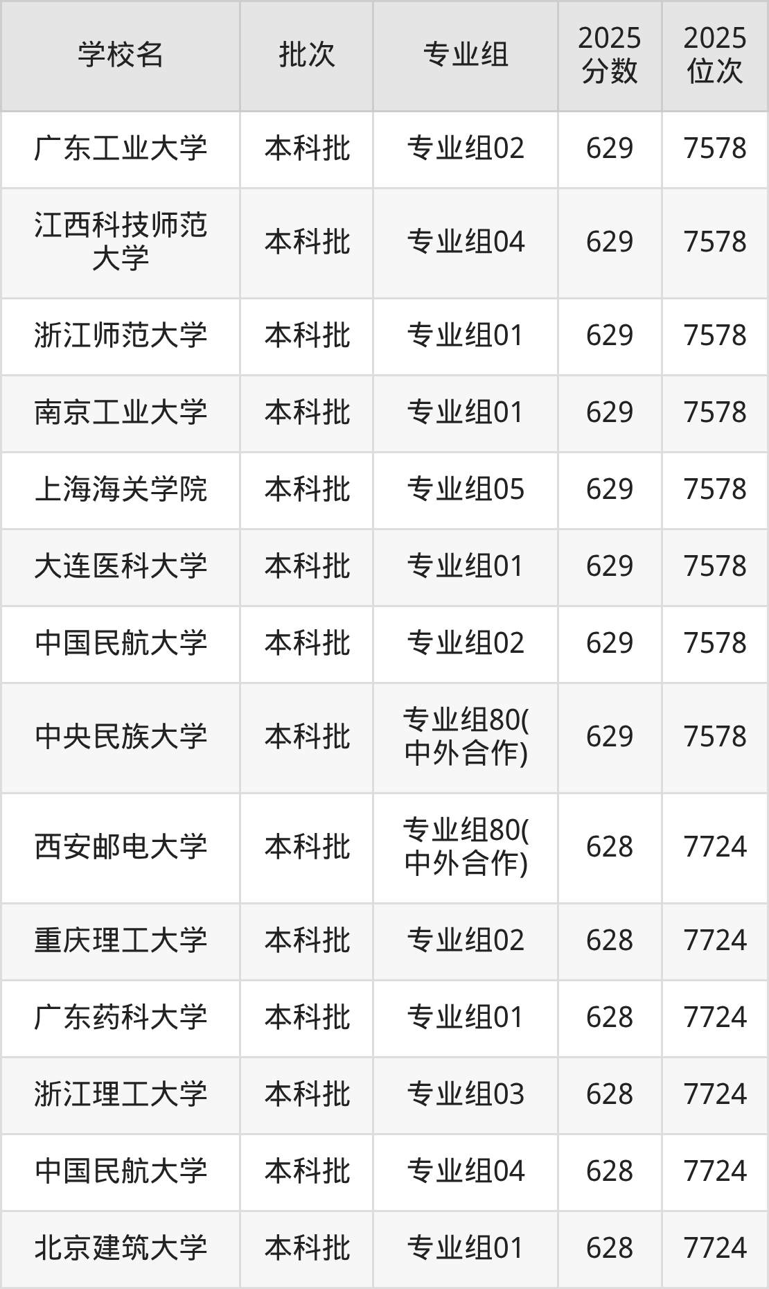 这些都是2026年高考7179名~7322名考生可以报考的大学,更多学校名单如下表所示: