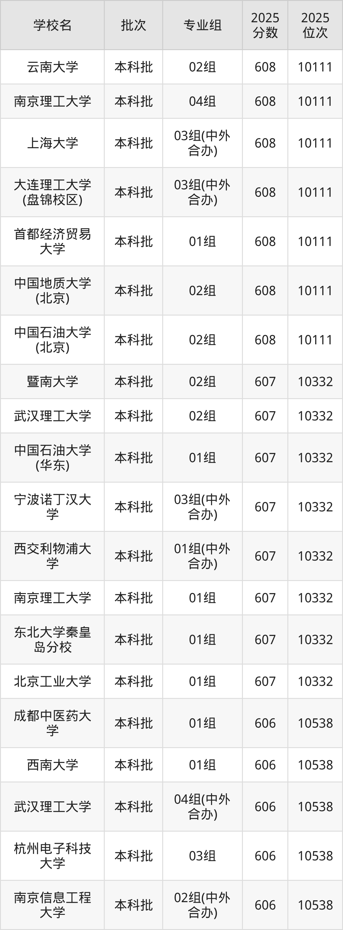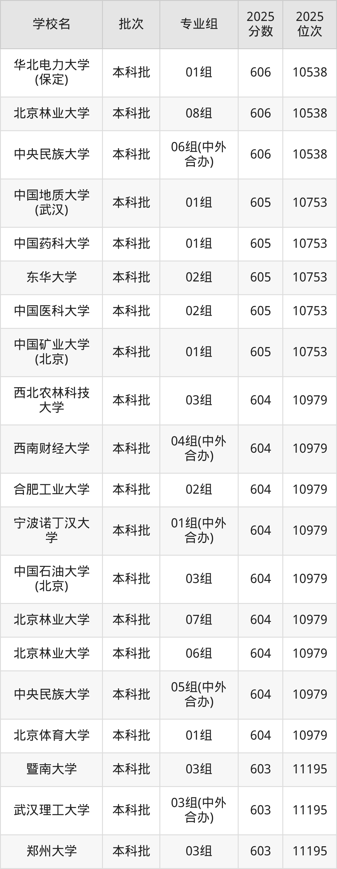 2025年北京高考605分(10539名~10753名)能上的大学有中国矿业大学(北京)01组、中国医科大学02组、东华大学02组、中国药科大学01组等。