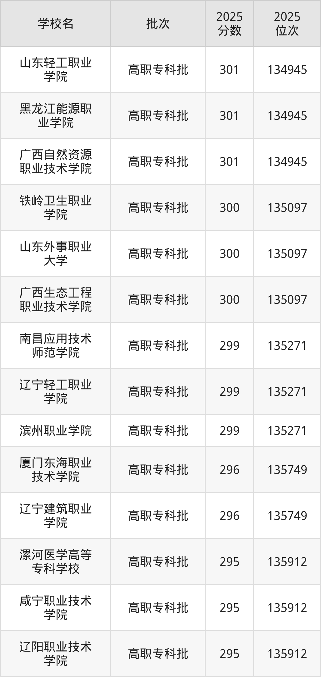 2025年辽宁高考物理类298分(135272名~135413名)录取位次低于该区间(较稳妥)的有辽宁建筑职业学院(135749名)、厦门东海职业技术学院(135749名)等;录取位次高于该区间(可冲)的有滨州职业学院(135271名)、南昌应用技术师范学院(135271名)等。
