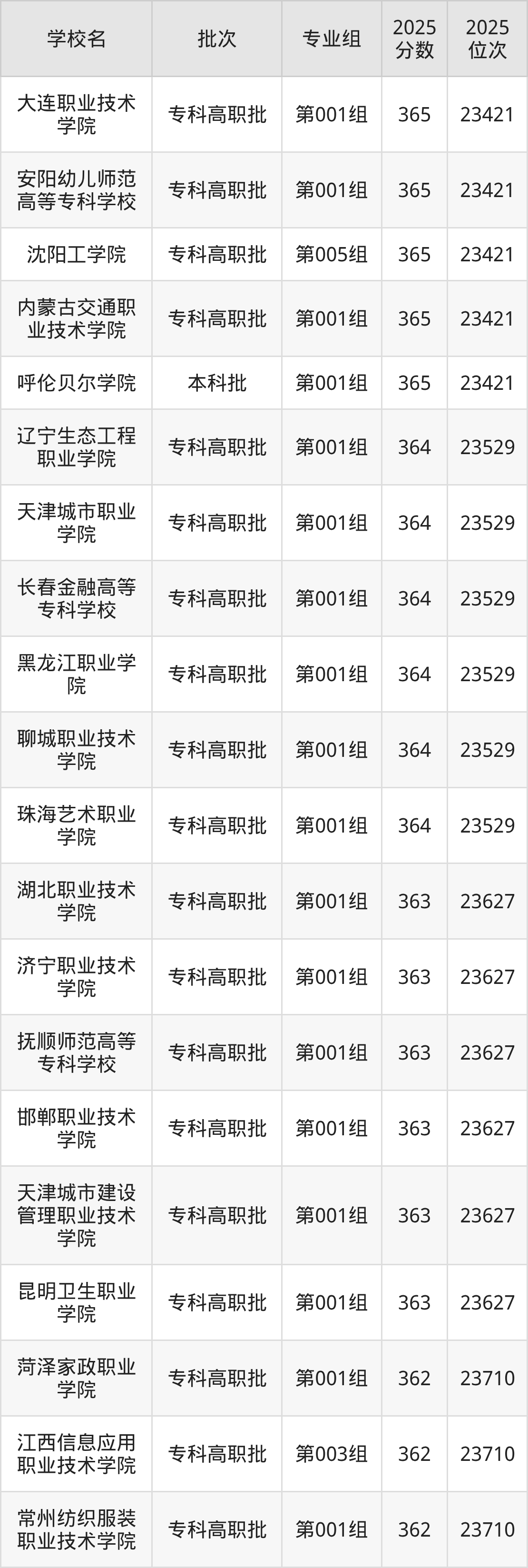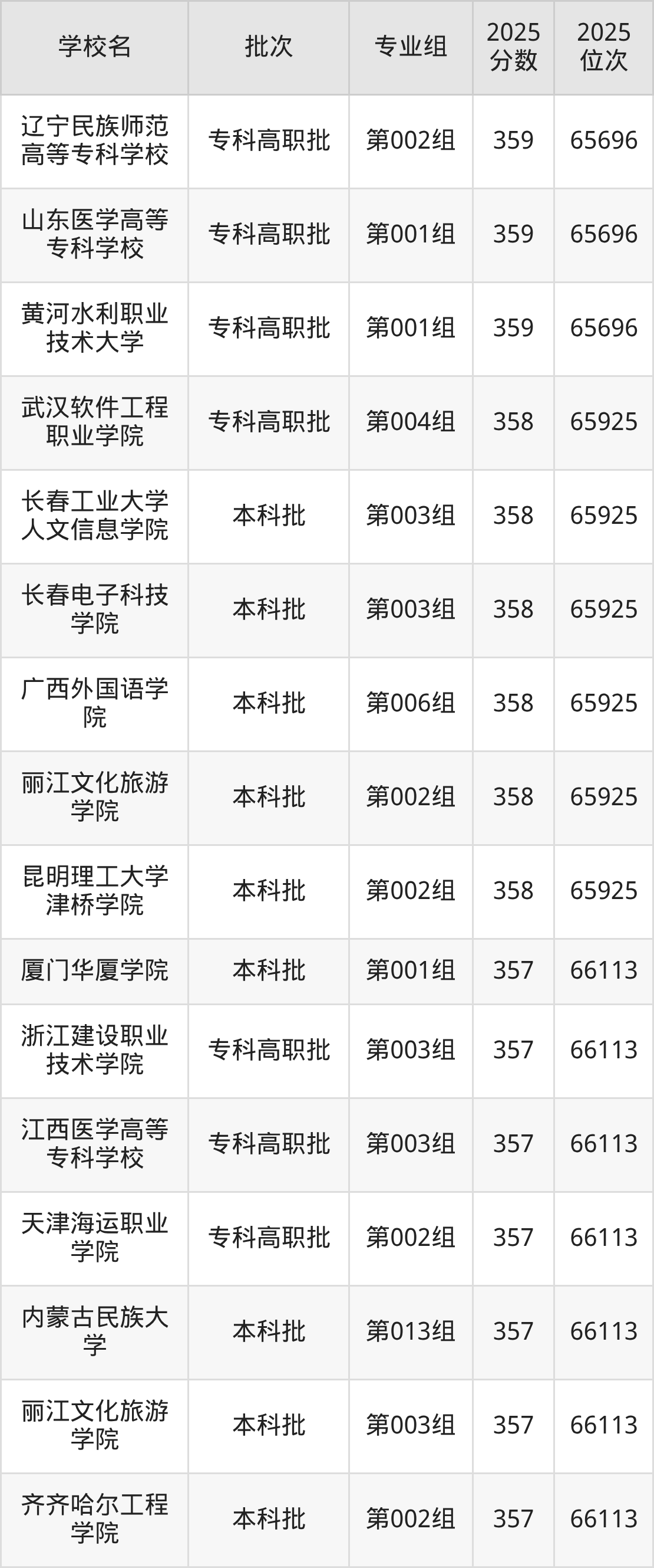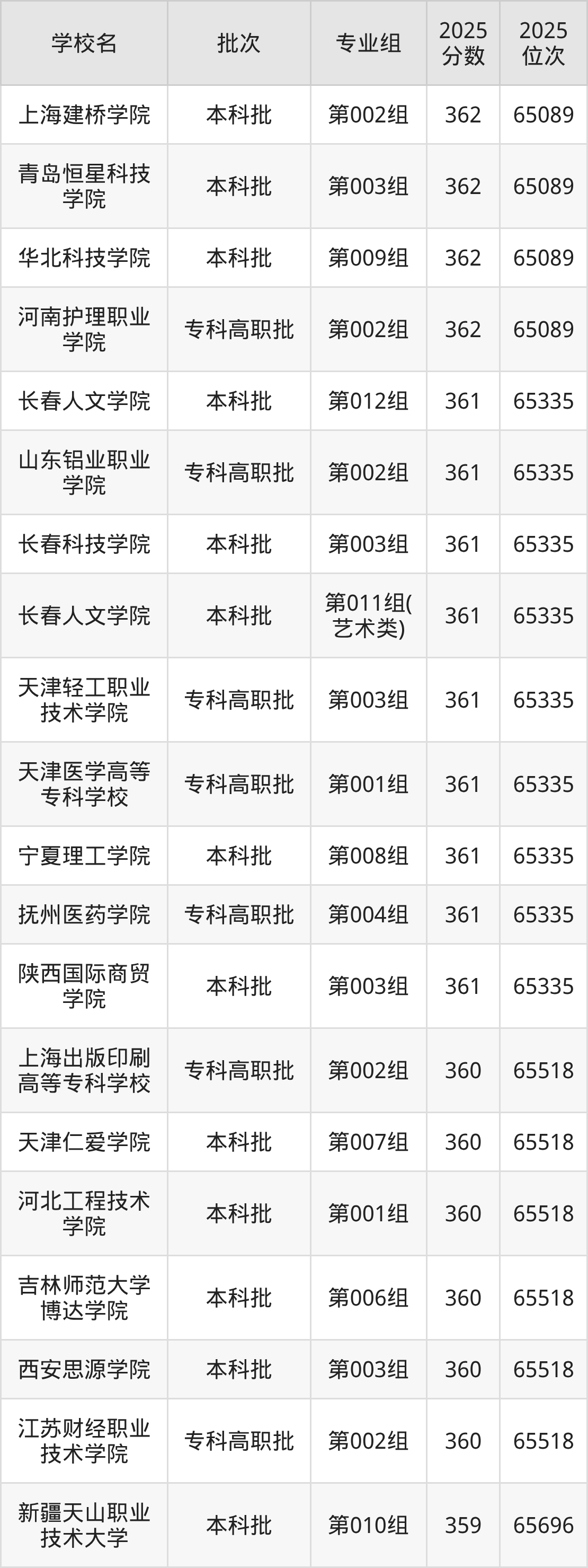 2025年吉林高考物理类359分(65519名~65696名)能上的大学有新疆天山职业技术大学第010组、辽宁民族师范高等专科学校第002组、山东医学高等专科学校第001组、黄河水利职业技术大学第001组。