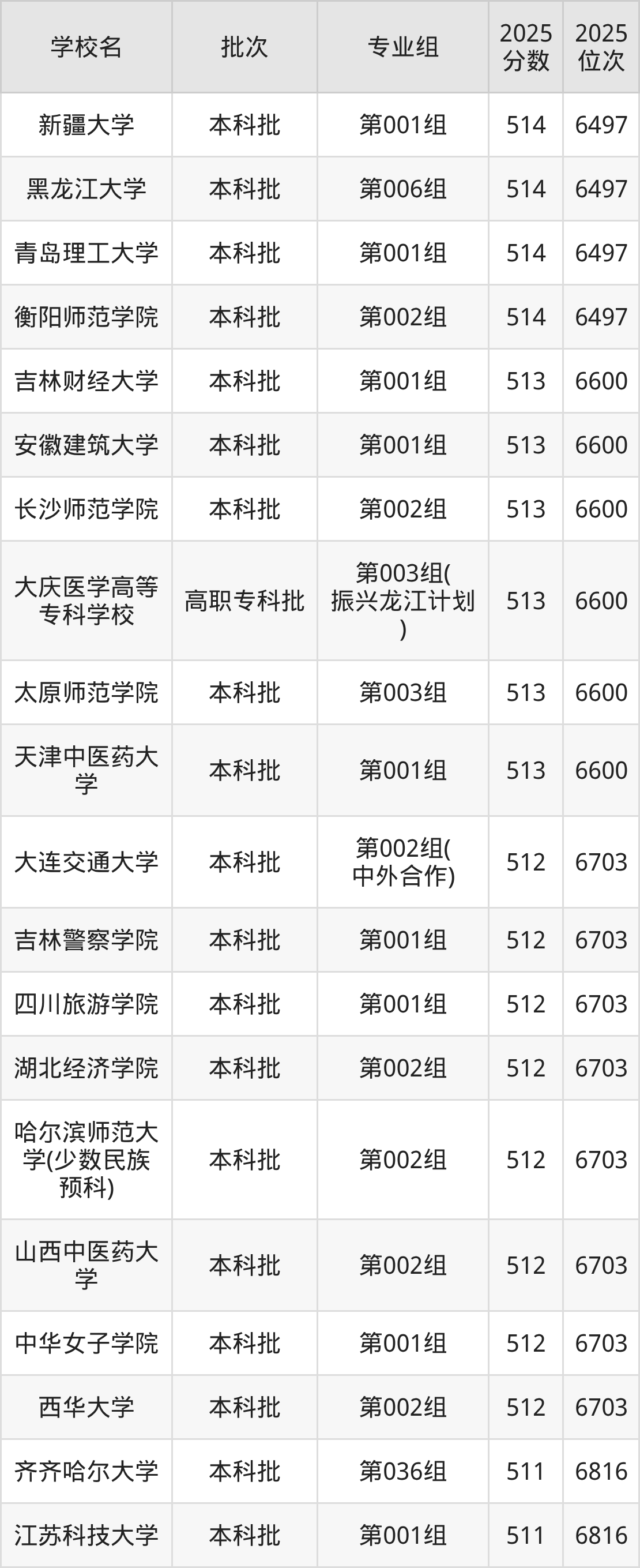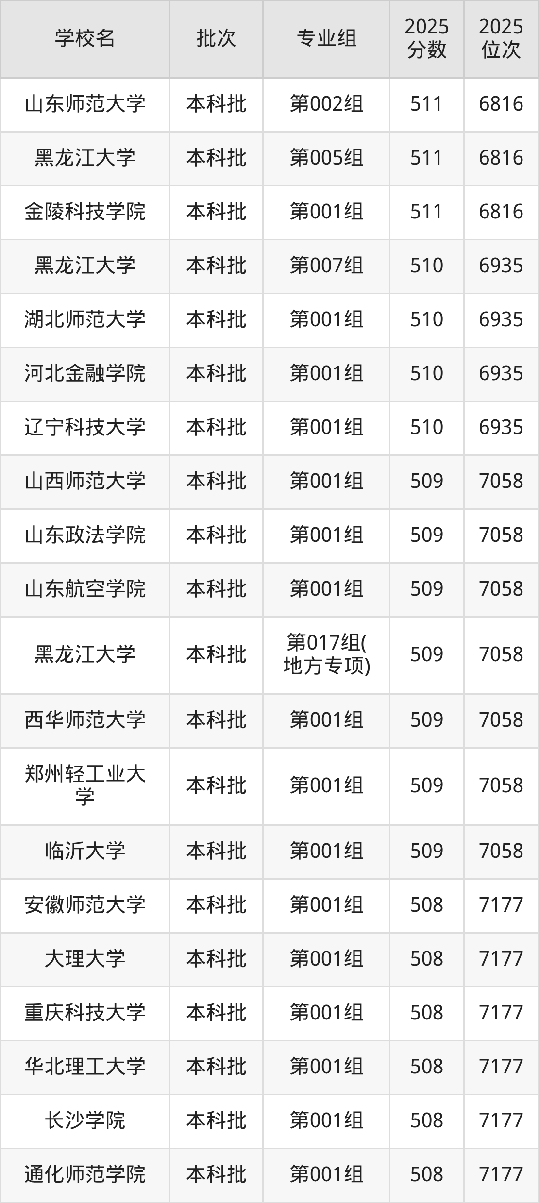 2025年黑龙江高考历史类509分(6936名~7058名)能上的大学有山西师范大学第001组、黑龙江大学第017组(地方专项)、临沂大学第001组、山东航空学院第001组等。