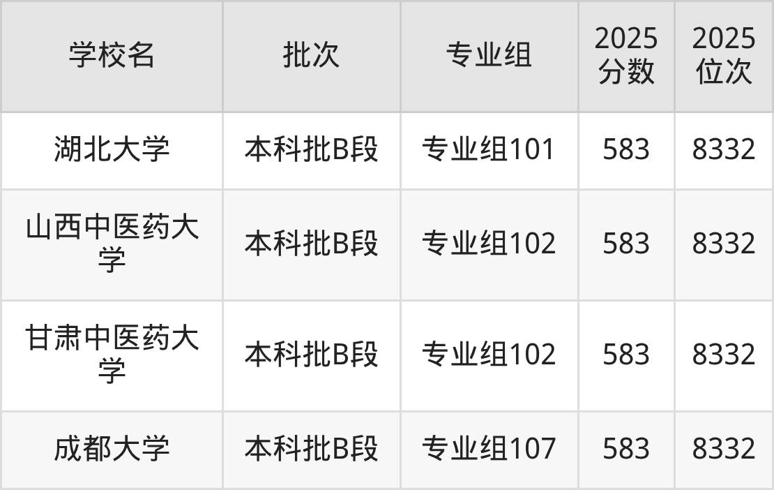 这些都是2026年高考历史类7829名~8073名考生可以报考的大学,更多学校名单如下表所示: