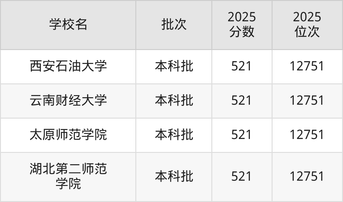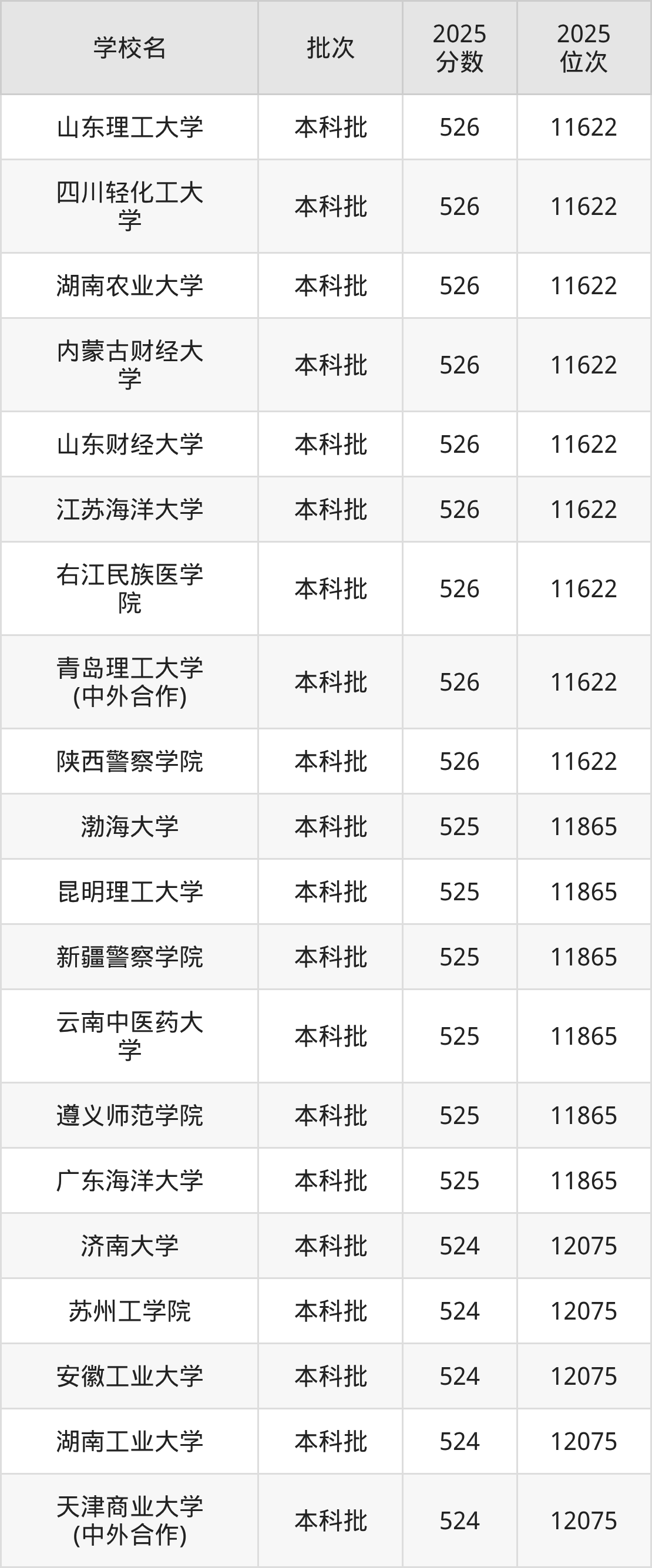 这些都是2026年高考历史类12076名~12316名考生可以报考的大学,更多学校名单如下表所示: