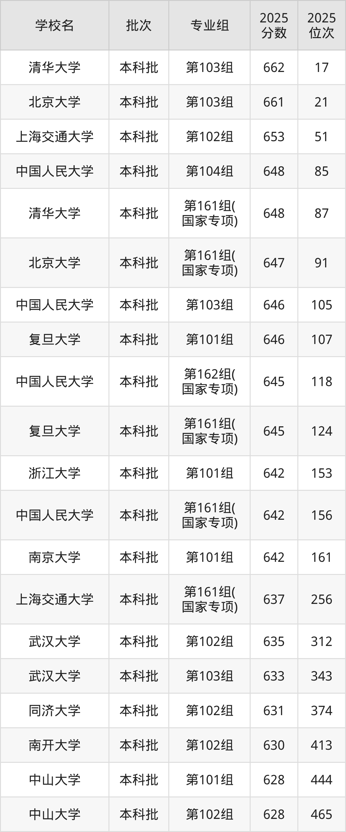 另外录取位次低于该区间(较稳妥)的有中国人民大学第103组(105名)、复旦大学第101组(107名)等;录取位次高于该区间(可冲)的有清华大学第161组(国家专项)(87名)、中国人民大学第104组(85名)等。