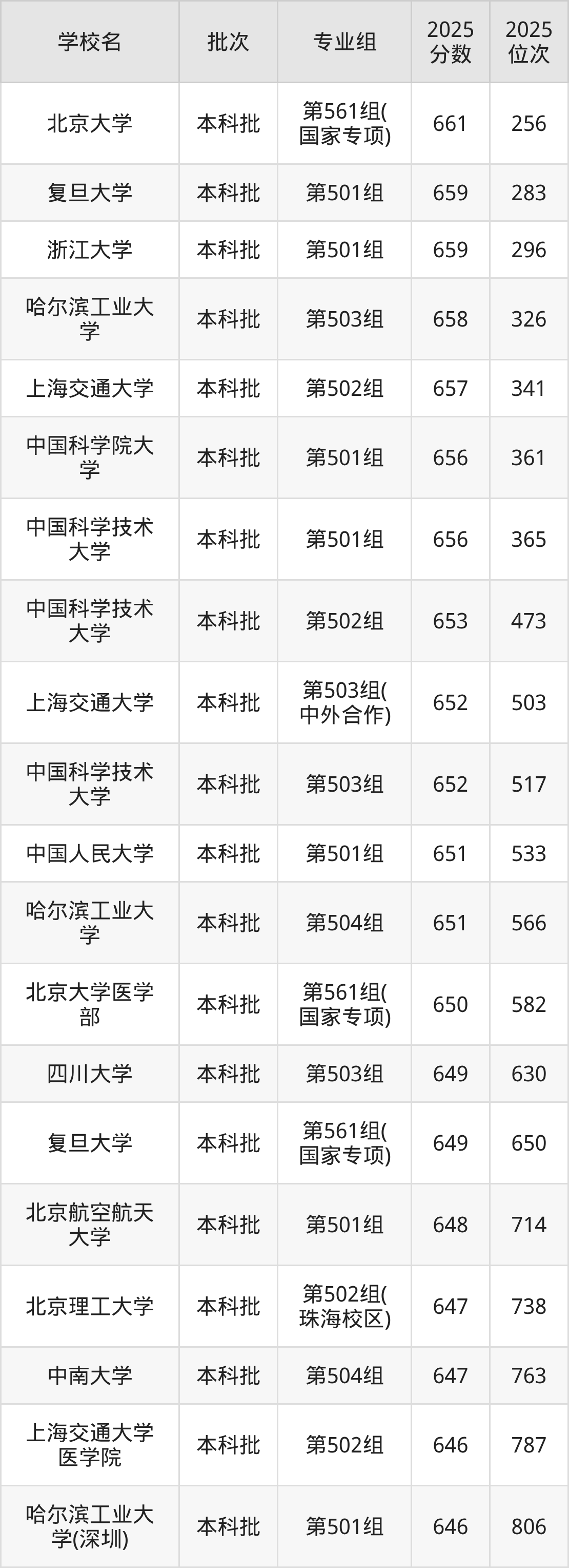 另外录取位次低于该区间(较稳妥)的有上海交通大学医学院第502组(787名)、哈尔滨工业大学(深圳)第501组(806名)等;录取位次高于该区间(可冲)的有北京航空航天大学第501组(714名)、复旦大学第561组(国家专项)(650名)等。