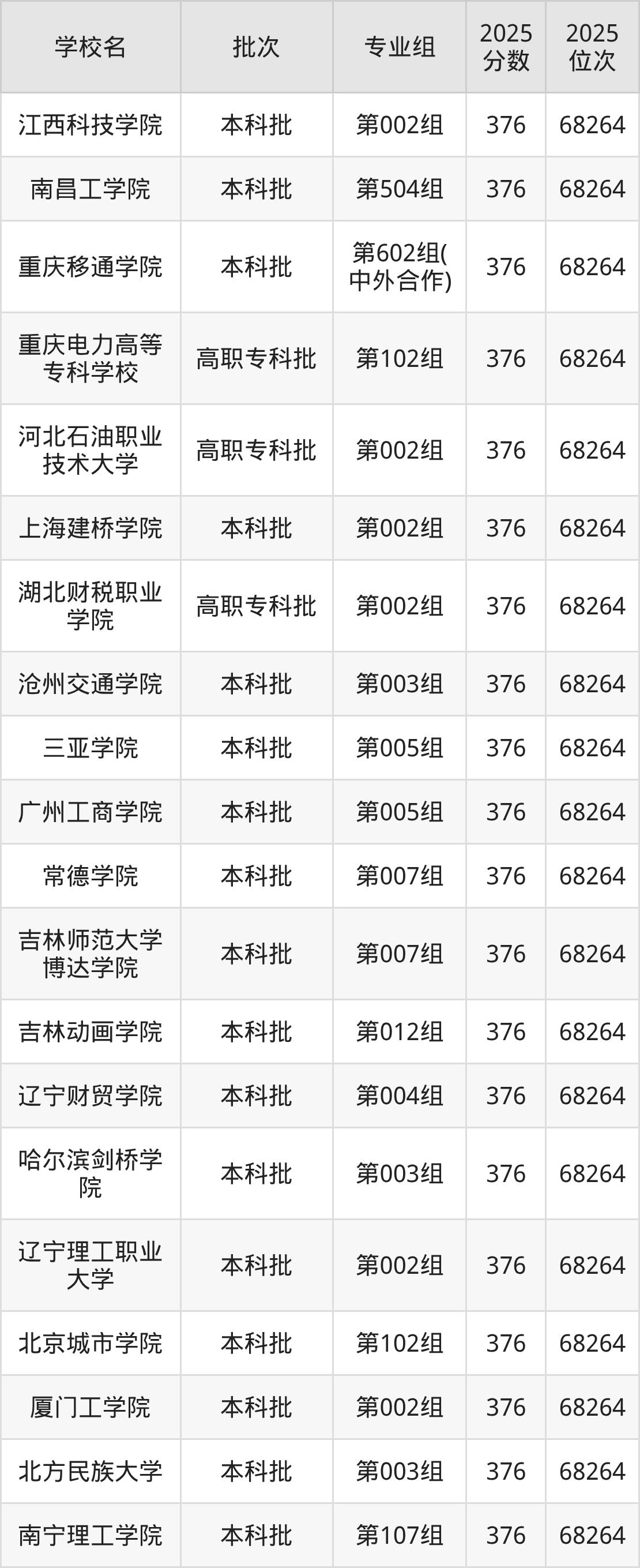 2025年内蒙古高考历史类374分(25629名~25726名)能上的大学有江西科技学院第009组。