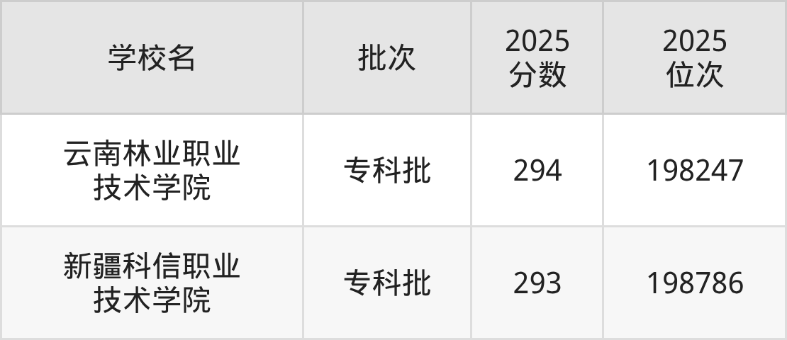 2025年河北高考历史类293分(198248名~198786名)能上的大学有新疆科信职业技术学院。