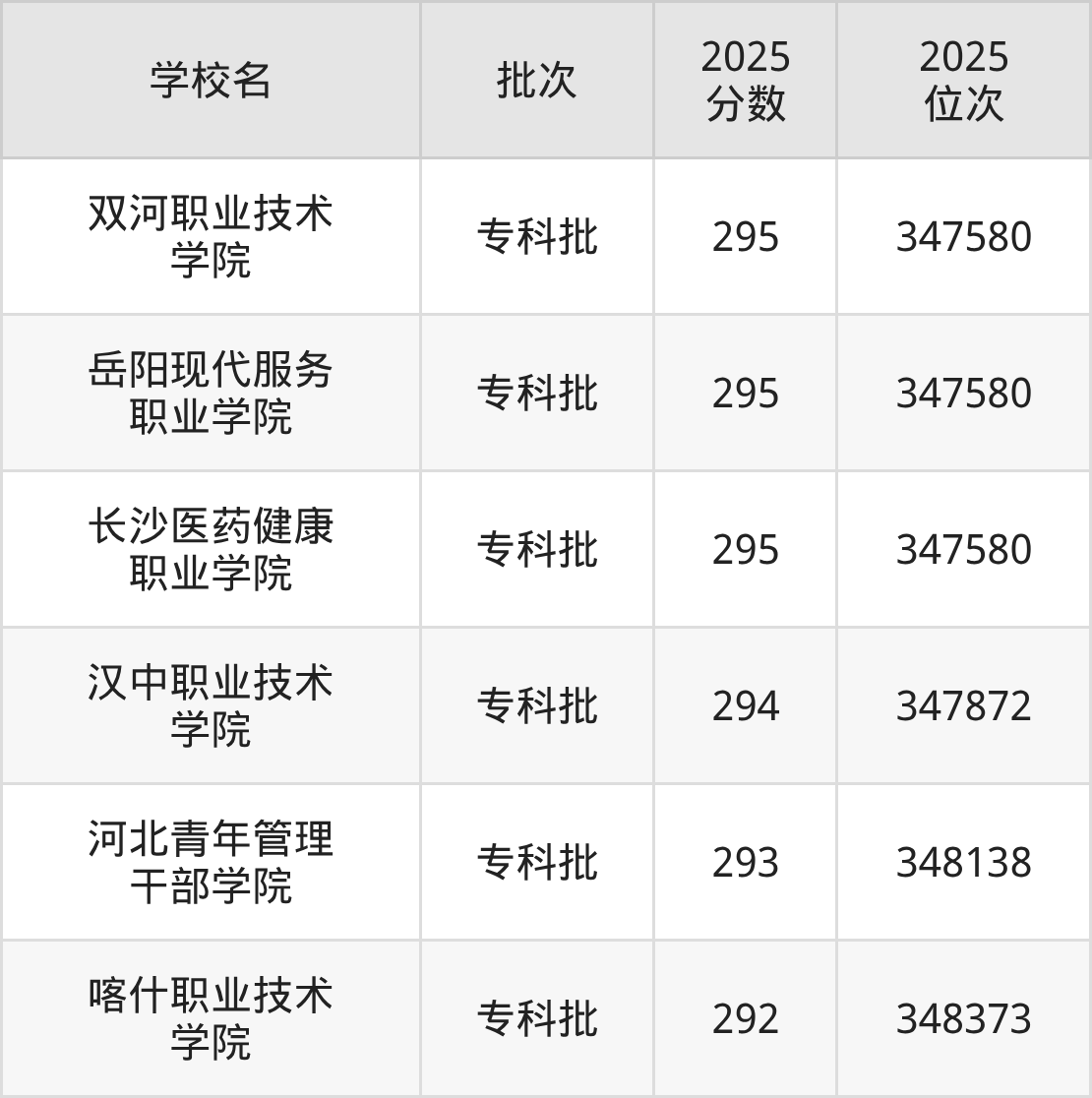 河北高考293分:历史类排名198786位、物理类排名348138位。该分数位次对应能上的大学历史类有新疆科信职业技术学院;物理类有河北青年管理干部学院,更多名单如下文所示,2026届考生可参考。