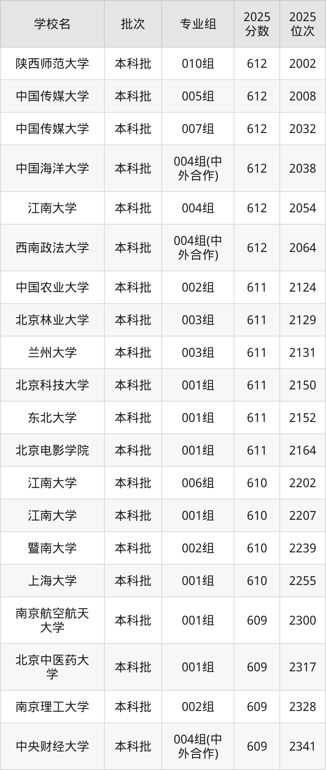 另外录取位次低于该区间(较稳妥)的有中国石油大学(北京)002组(2612名)、西北政法大学001组(2642名)等;录取位次高于该区间(可冲)的有东北大学秦皇岛分校001组(2486名)、西北农林科技大学002组(2386名)等。