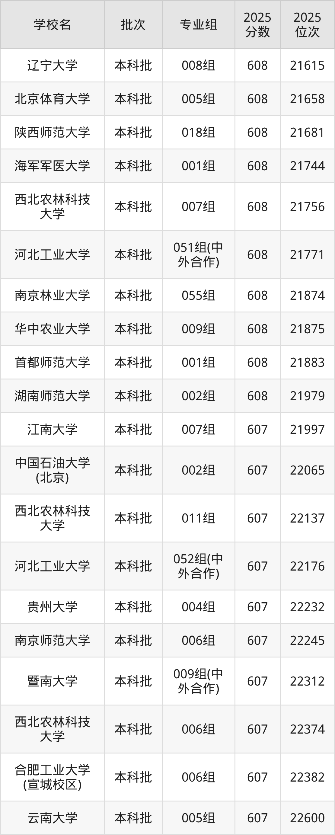2025年安徽高考物理类607分(21995名~22637名)能上的大学有贵州大学004组、合肥工业大学(宣城校区)006组、河北工业大学052组(中外合作)、暨南大学009组(中外合作)等。