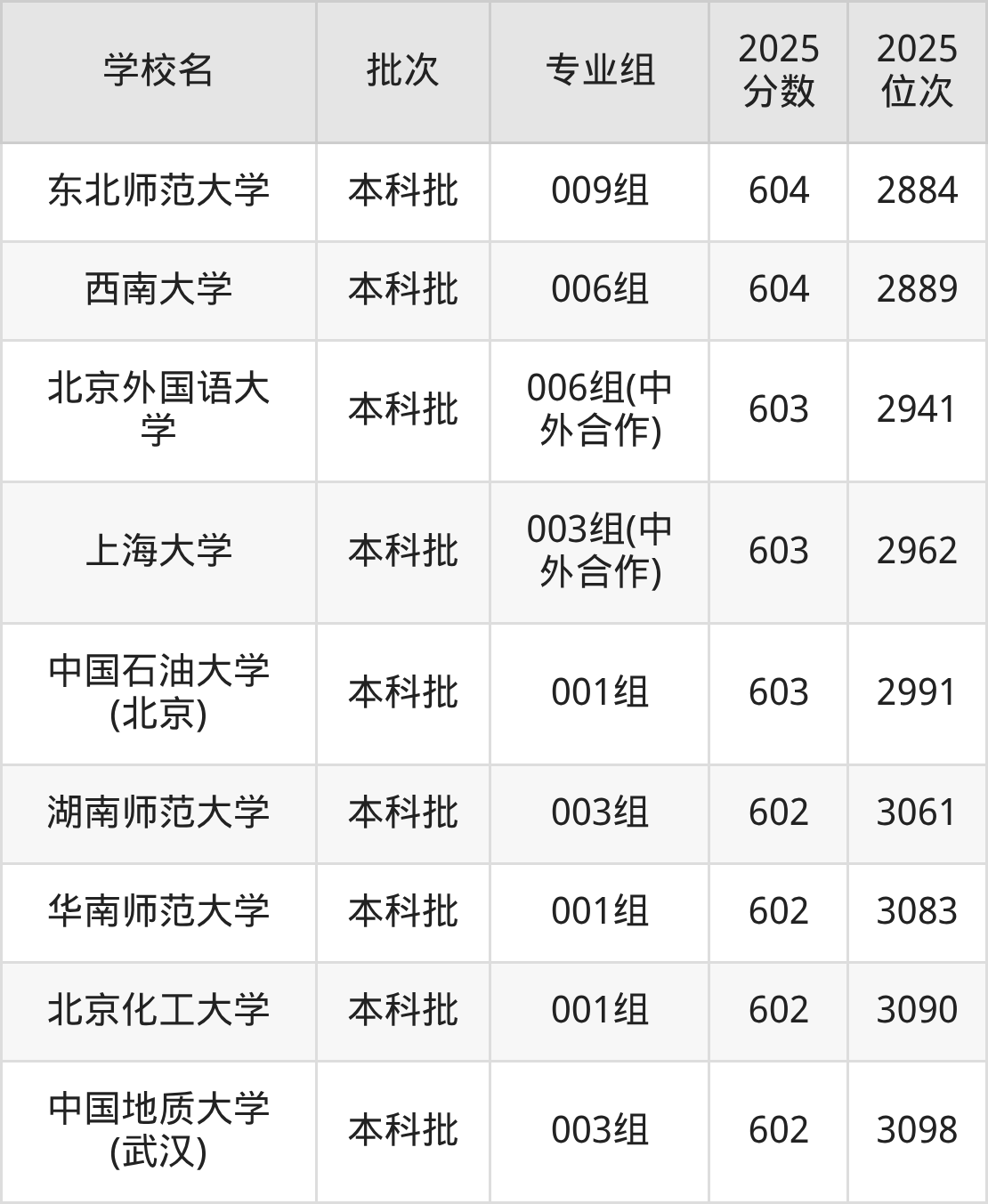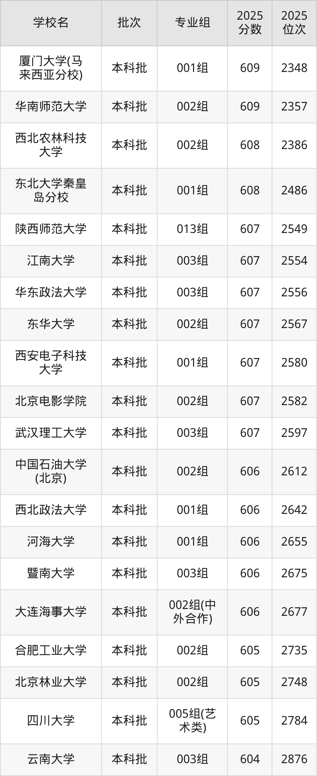 这些都是2026年高考历史类2493名~2600名考生可以报考的大学,更多学校名单如下表所示: