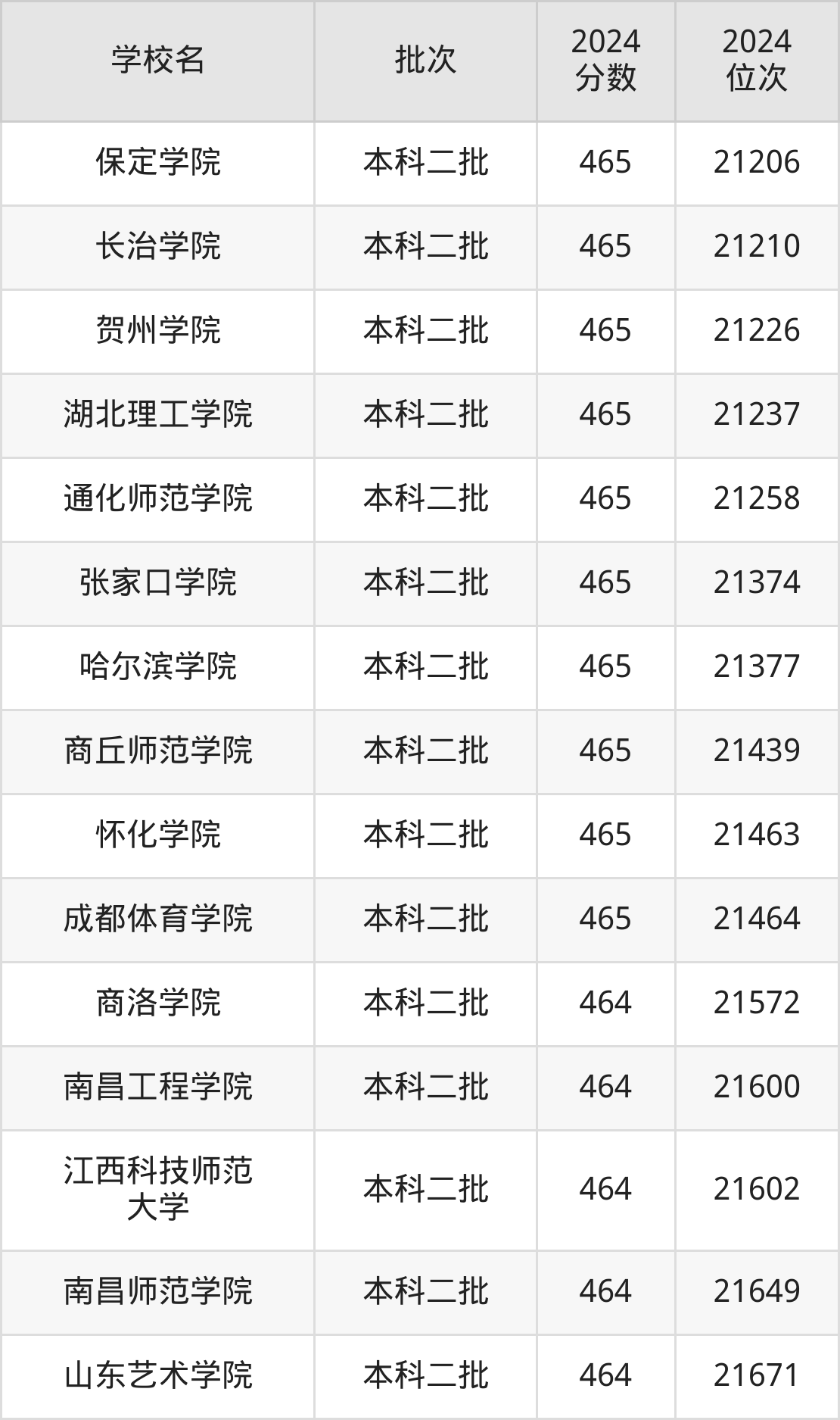 这些都是2025年高考文科20836名~21196名考生可以报考的大学,更多学校名单如下表所示: