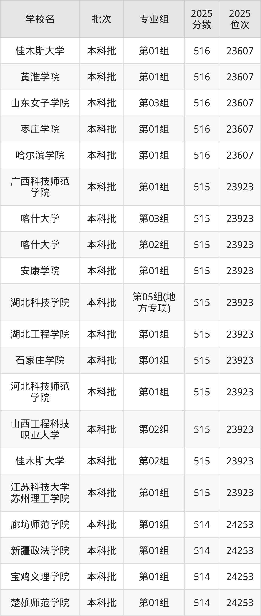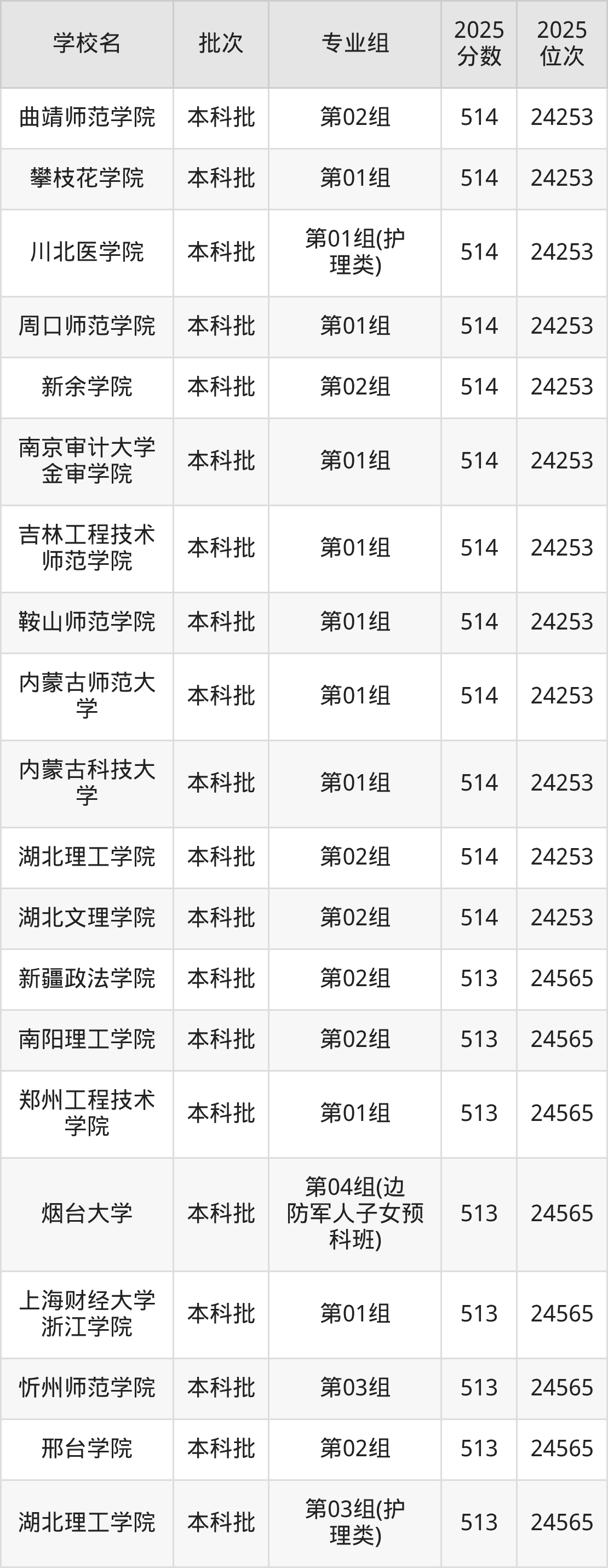 2025年湖北高考历史类514分(23924名~24253名)能上的大学有湖北文理学院第02组、湖北理工学院第02组、廊坊师范学院第01组、内蒙古科技大学第01组等。