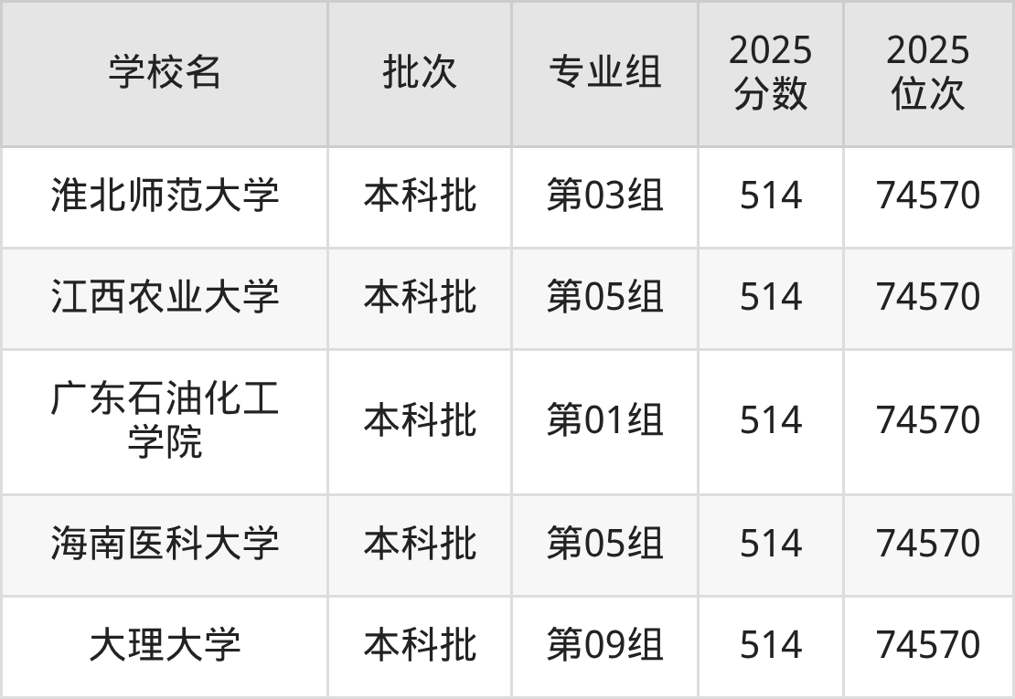 这些都是2026年高考物理类73706名~74570名考生可以报考的大学,更多学校名单如下表所示: