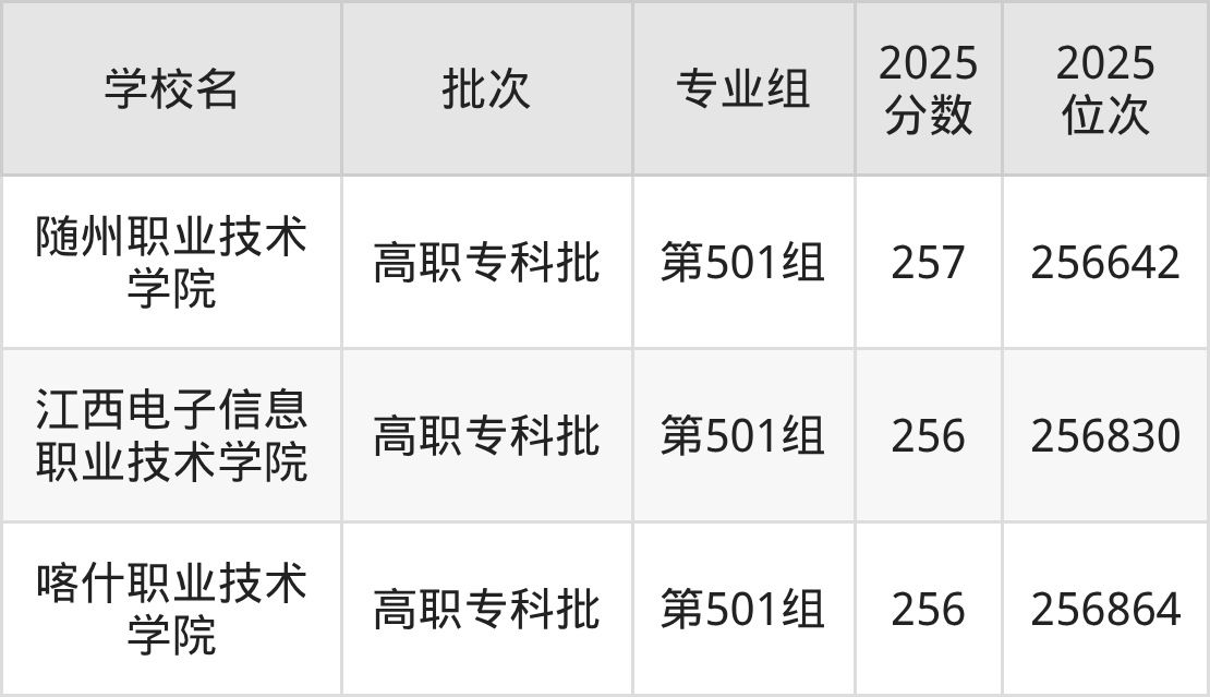 江西高考258分:历史类排名189811位、物理类排名256586位。该分数位次对应能上的大学物理类有随州职业技术学院第501组、江西电子信息职业技术学院第501组,更多名单如下文所示,2026届考生可参考。