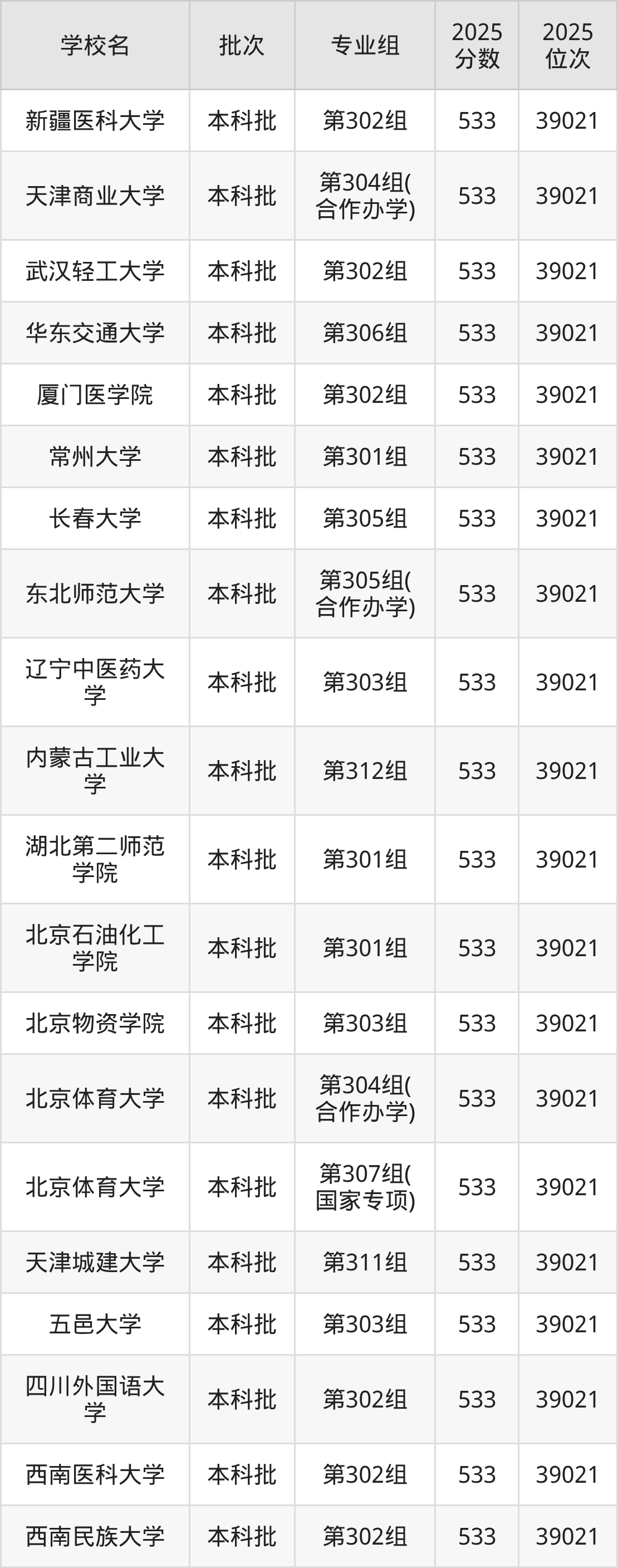 这些都是2026年高考物理类39022名~39578名考生可以报考的大学,更多学校名单如下表所示: