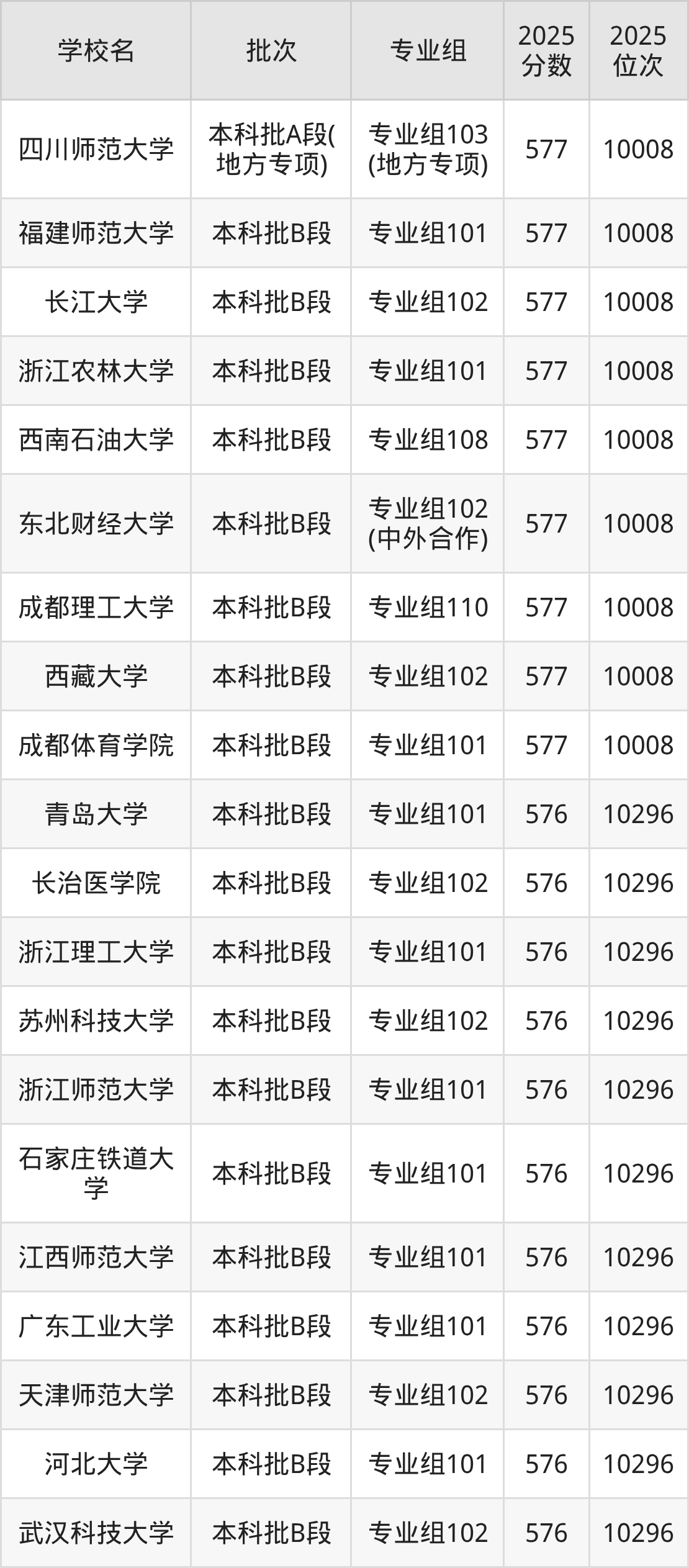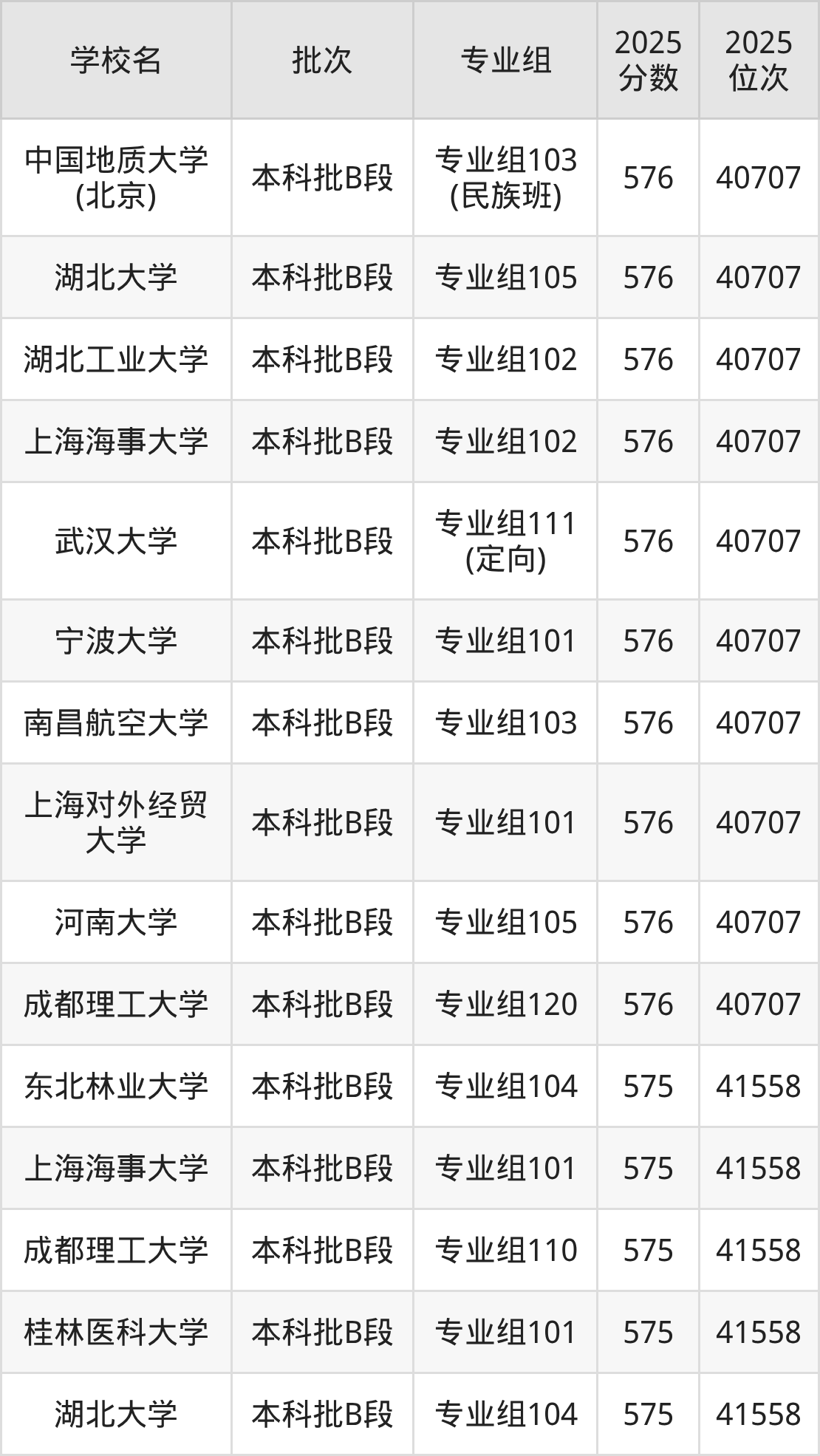 2025年四川高考物理类575分(40708名~41558名)能上的大学有成都理工大学专业组110、桂林医科大学专业组101、湖北大学专业组104、东北林业大学专业组104等。