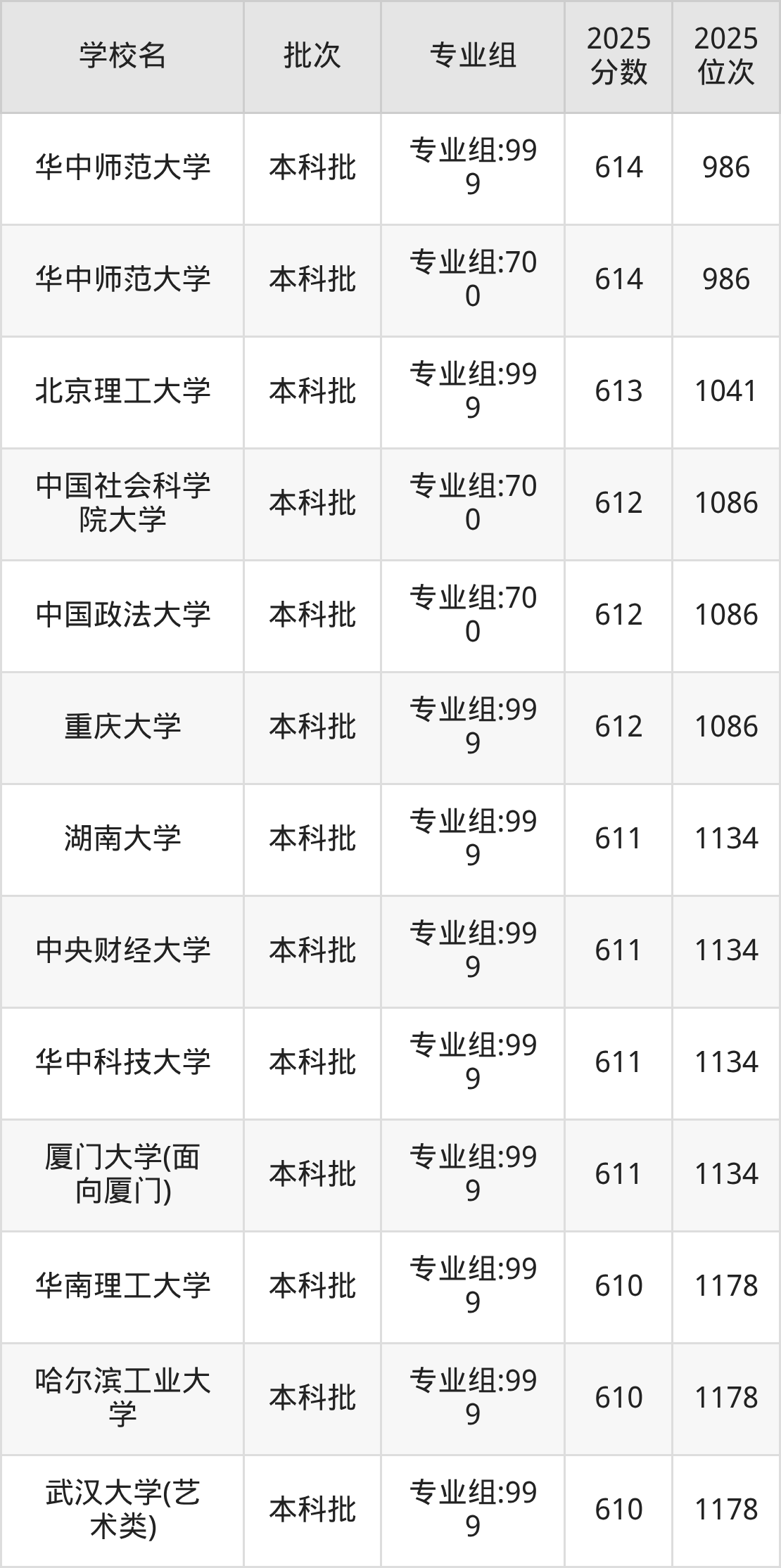 2025年福建高考历史类621分(660名~700名)能上的大学有华东师范大学专业组:999。