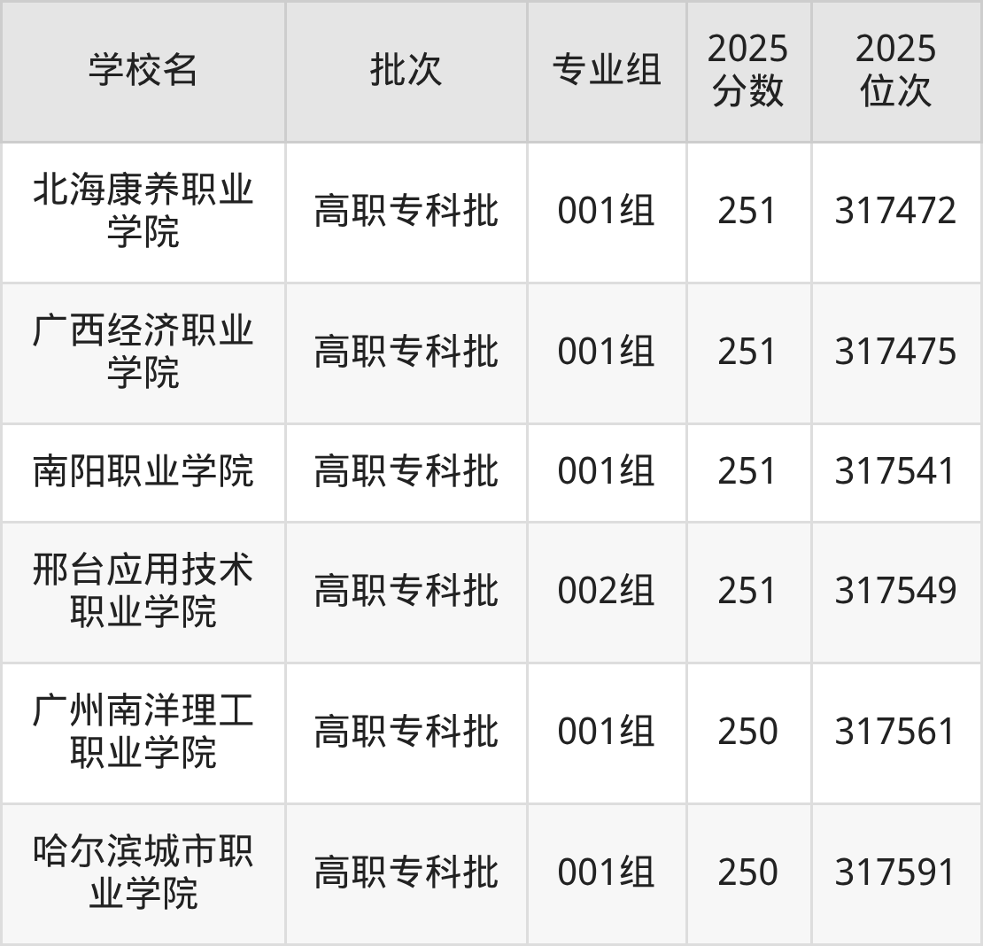 2025年安徽高考物理类255分(316974名~317094名)能上的大学有德阳科贸职业学院001组、广东酒店管理职业技术学院001组、泉州幼儿师范高等专科学校001组。