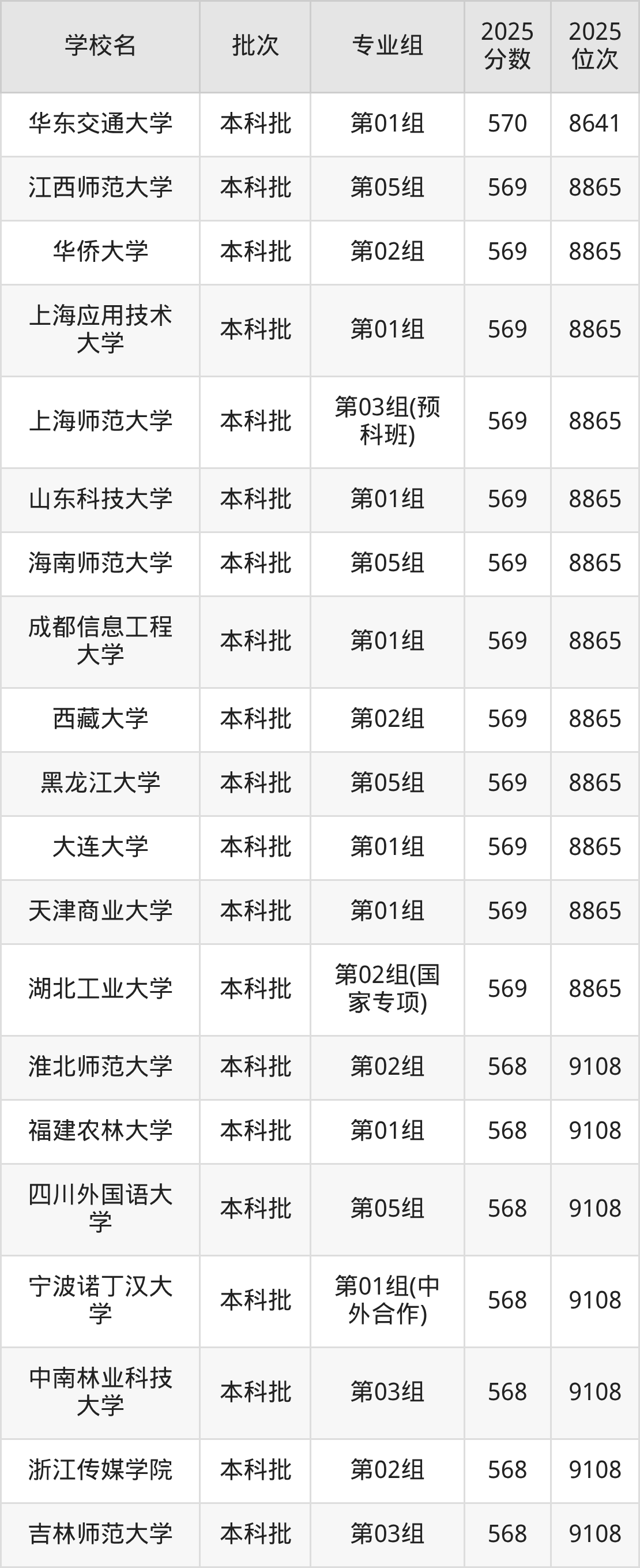 这些都是2026年高考历史类8423名~8641名考生可以报考的大学,更多学校名单如下表所示: