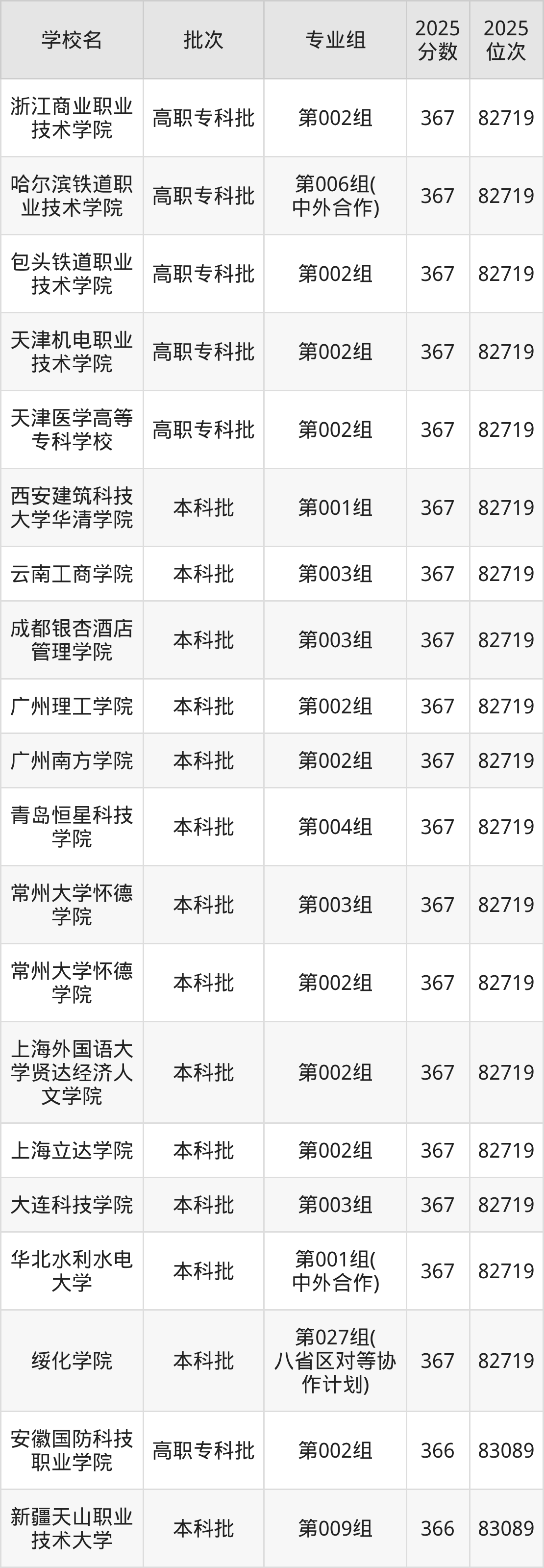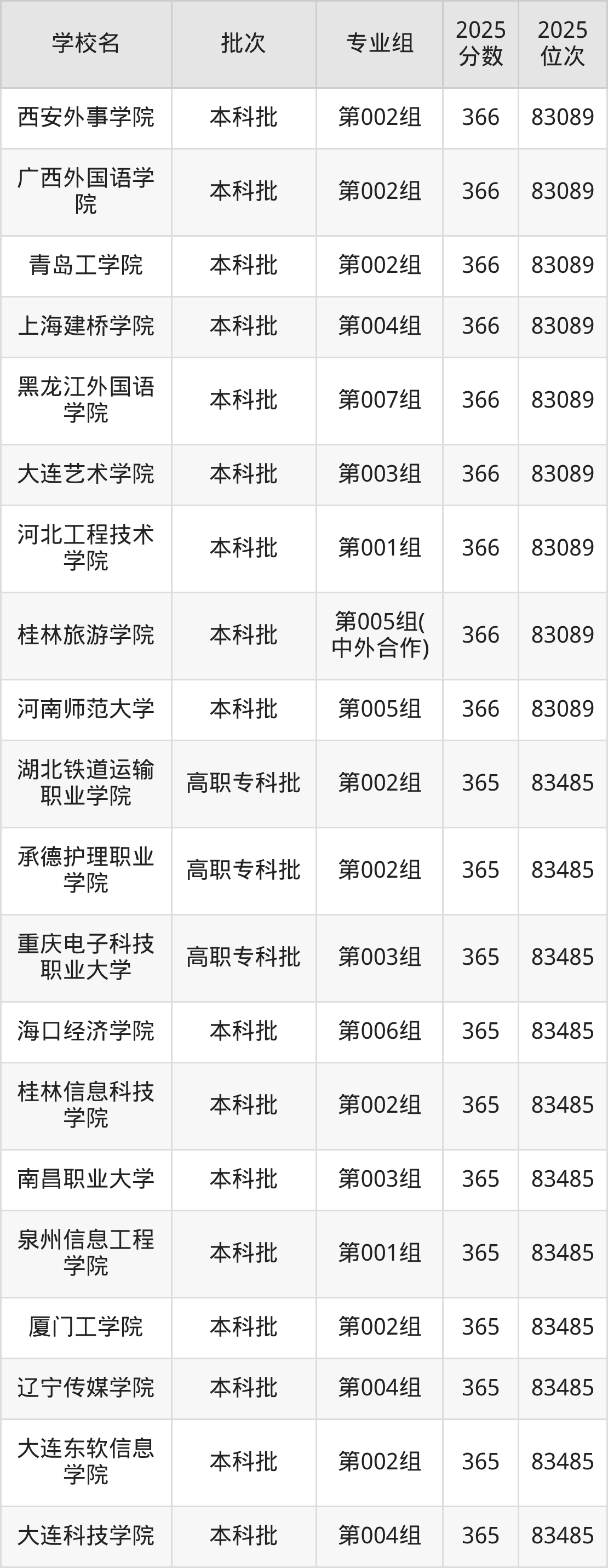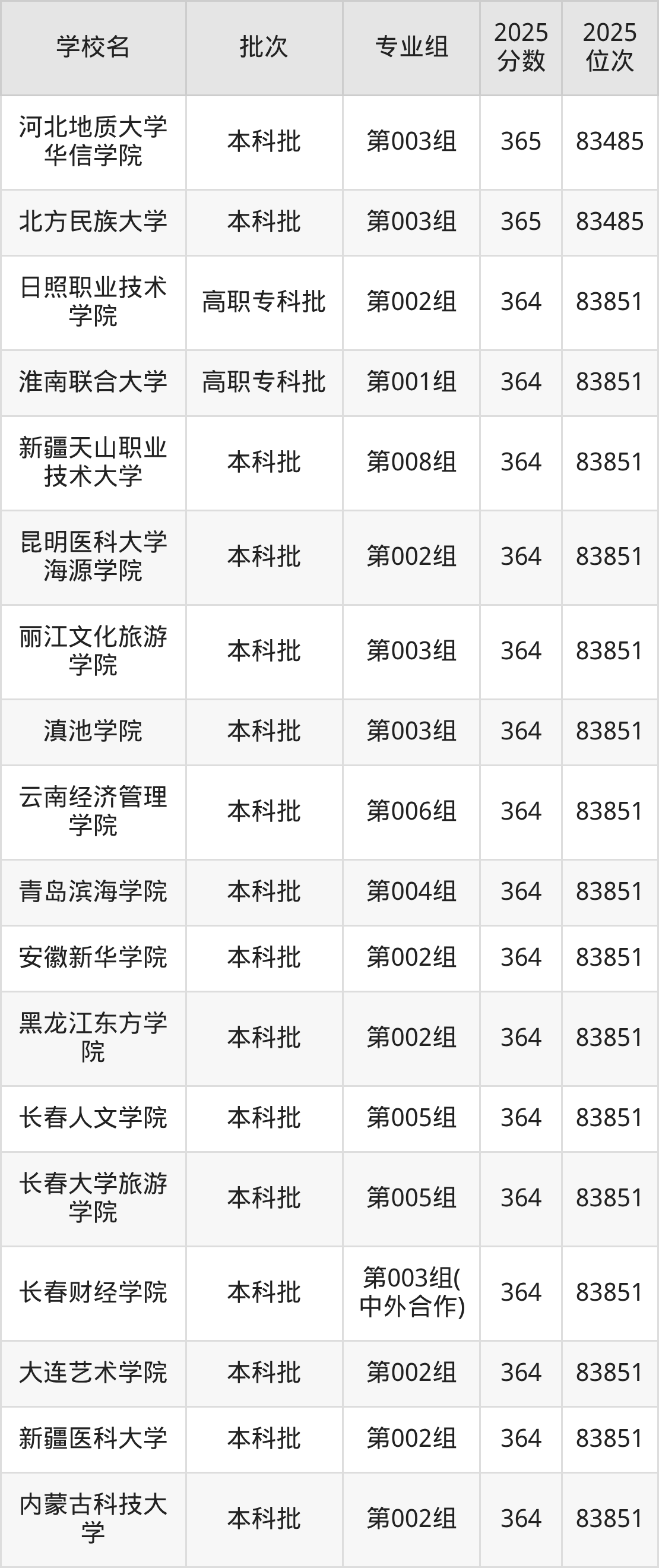 2025年黑龙江高考物理类365分(83090名~83485名)能上的大学有北方民族大学第003组、河北地质大学华信学院第003组、大连科技学院第004组、大连东软信息学院第002组等。