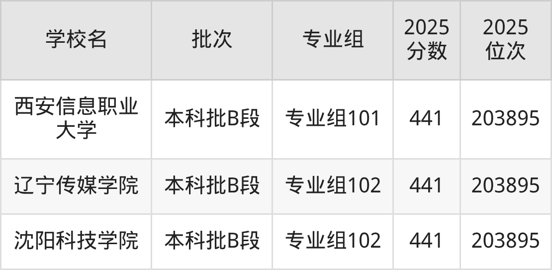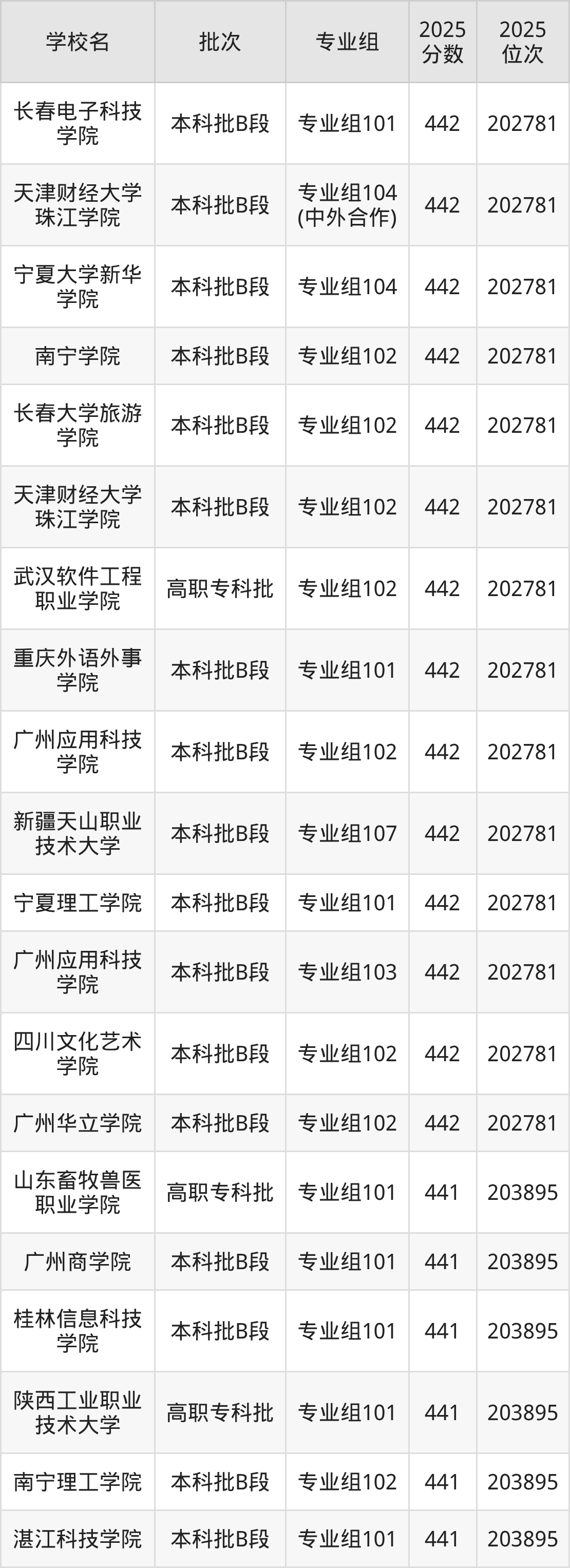 2025年四川高考物理类441分(202782名~203895名)能上的大学有陕西工业职业技术大学专业组101、广州商学院专业组101、西安信息职业大学专业组101、南宁理工学院专业组102等。