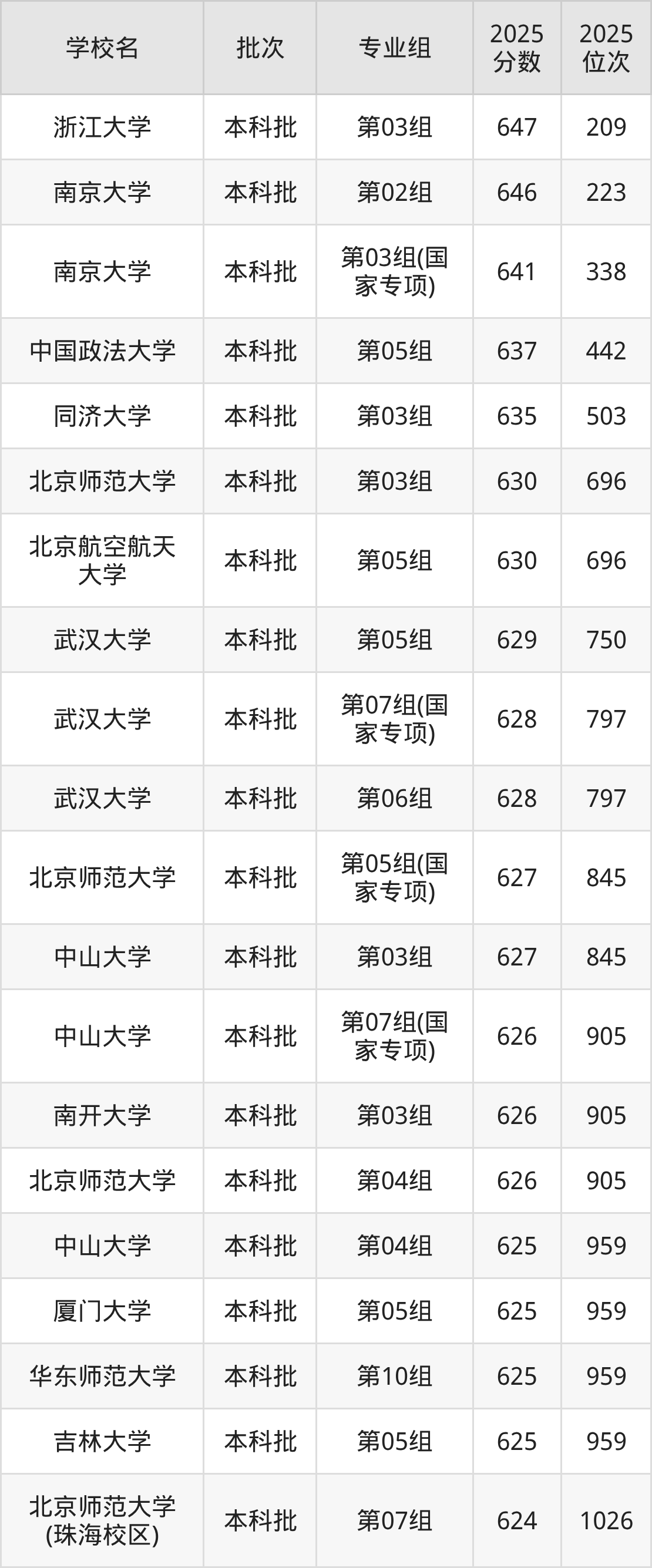 另外录取位次低于该区间(较稳妥)的有武汉大学第07组(国家专项)(797名)、武汉大学第06组(797名)等;录取位次高于该区间(可冲)的有北京航空航天大学第05组(696名)、北京师范大学第03组(696名)等。