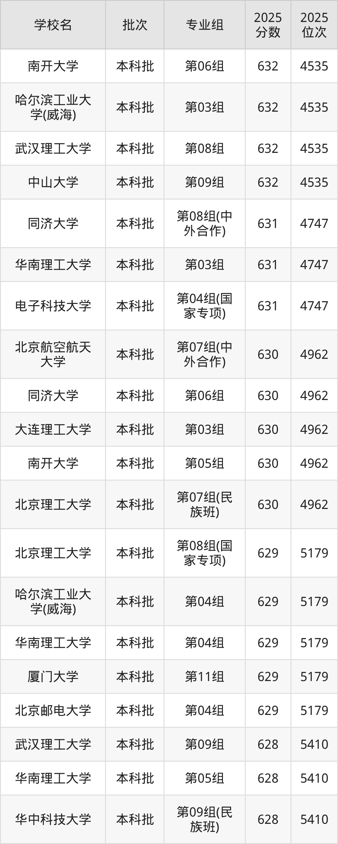 另外录取位次低于该区间(较稳妥)的有武汉理工大学第09组(5410名)、电子科技大学(沙河校区)第02组(中外合作)(5410名)等;录取位次高于该区间(可冲)的有大连理工大学第03组(4962名)、南开大学第05组(4962名)等。