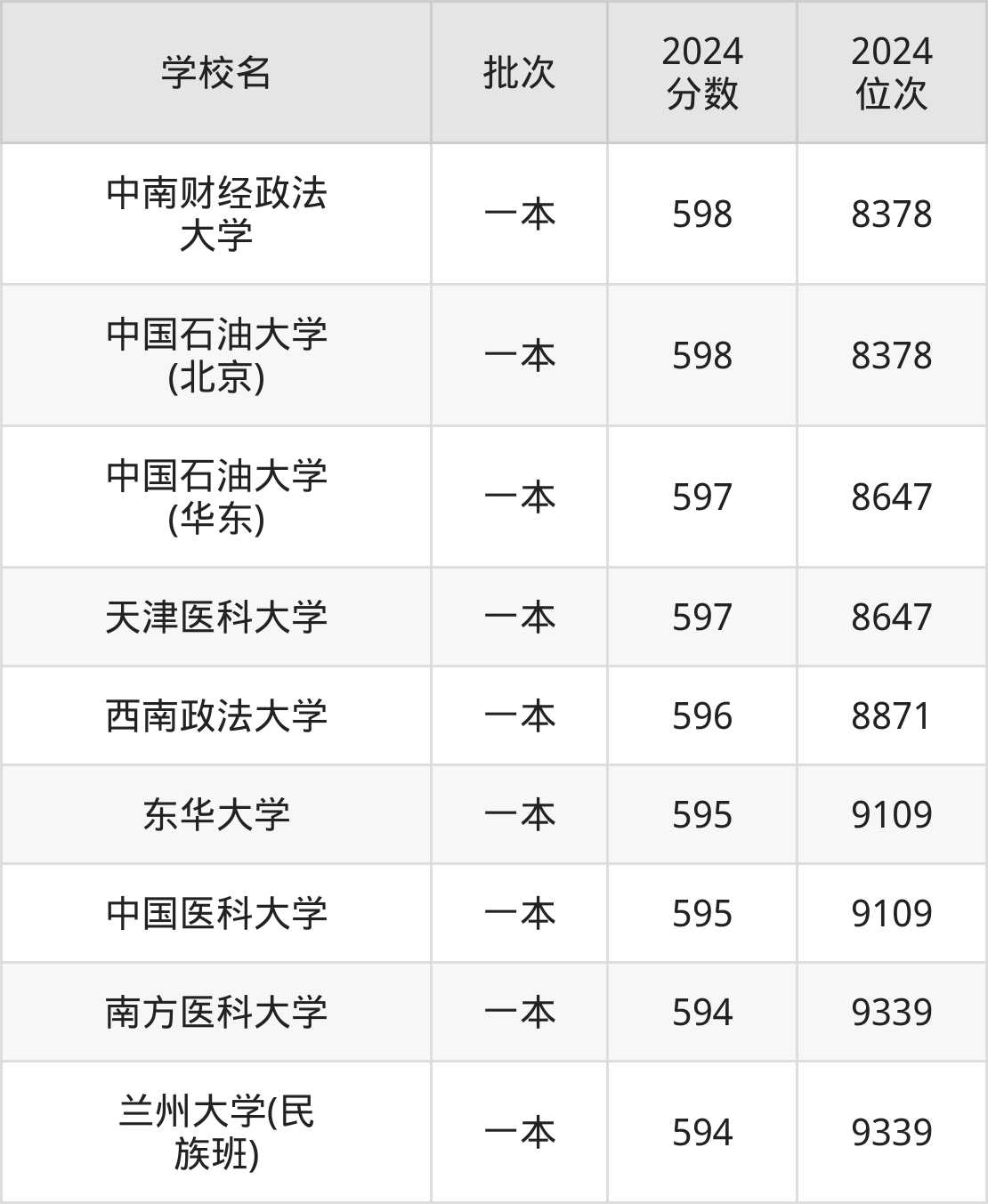 这些都是2025年高考文科3663名~3791名考生可以报考的大学,更多学校名单如下表所示: