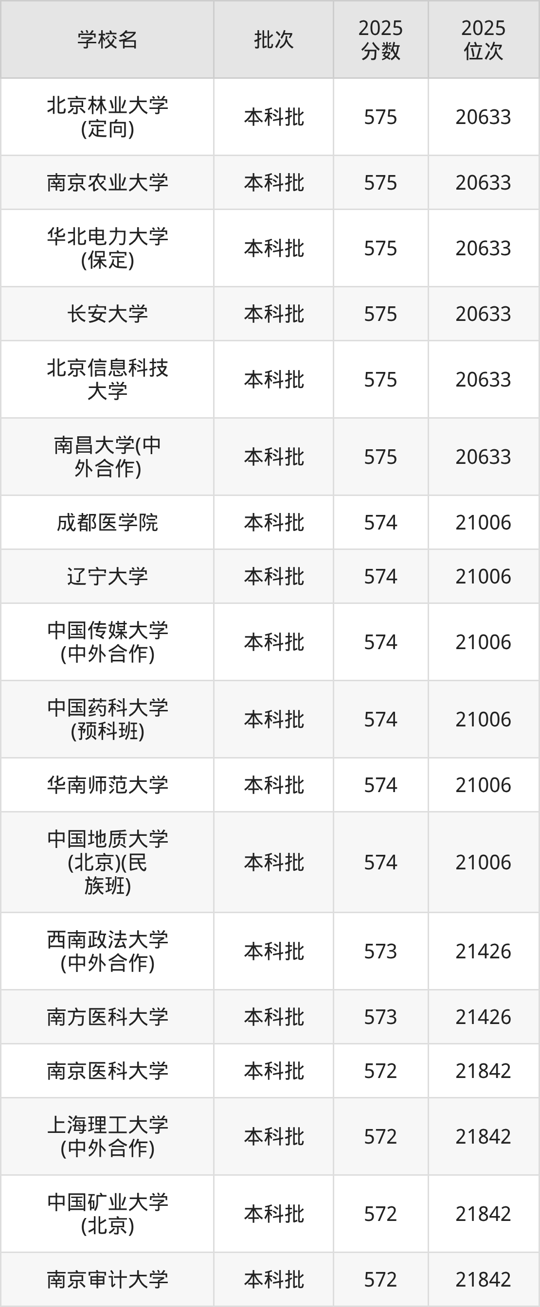 2025年重庆高考物理类573分(21007名~21426名)能上的大学有西南政法大学(中外合作)、南方医科大学。