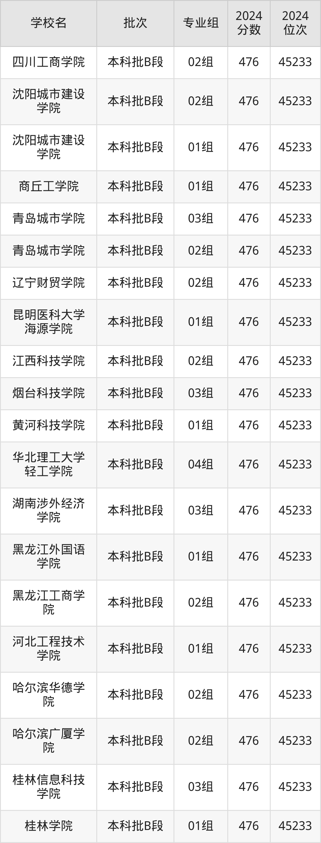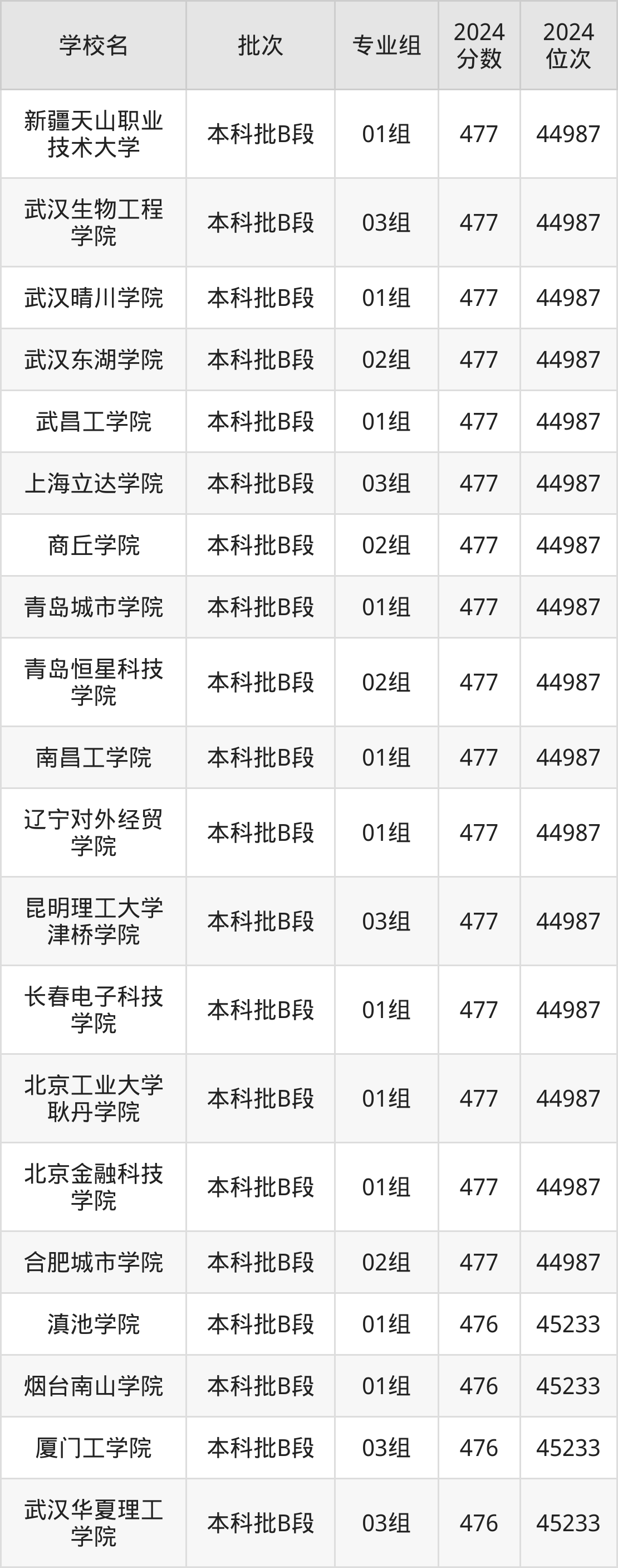 这些都是2025年高考45234名~45489名考生可以报考的大学,更多学校名单如下表所示: