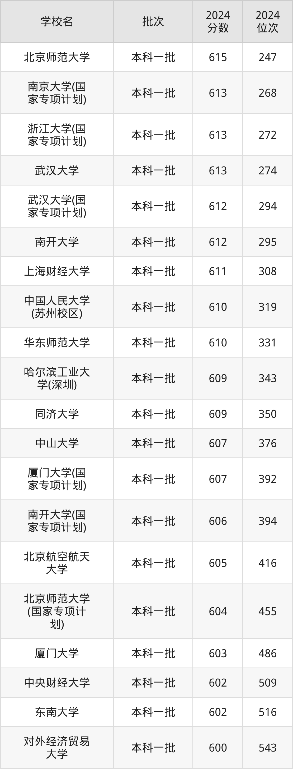 由于高考录取分数线历年波动较大,因此本文以该分数对应的位次排名为大家整理能上的大学名单。