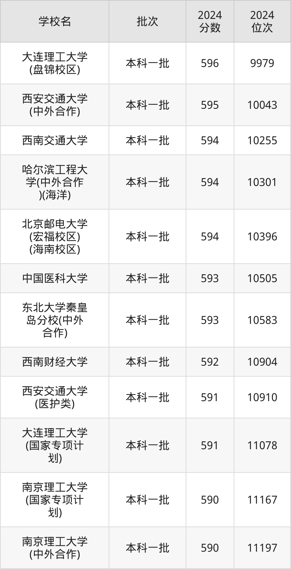 2024年陕西高考理科593分(10470名~10703名)能上的大学有中国医科大学、东北大学秦皇岛分校(中外合作)。