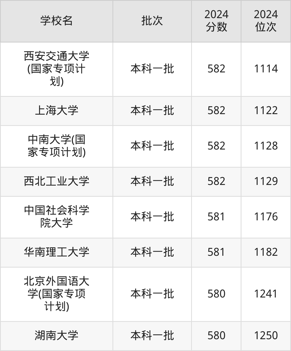 这些都是2025年高考理科10470名~10703名考生可以报考的大学,更多学校名单如下表所示: