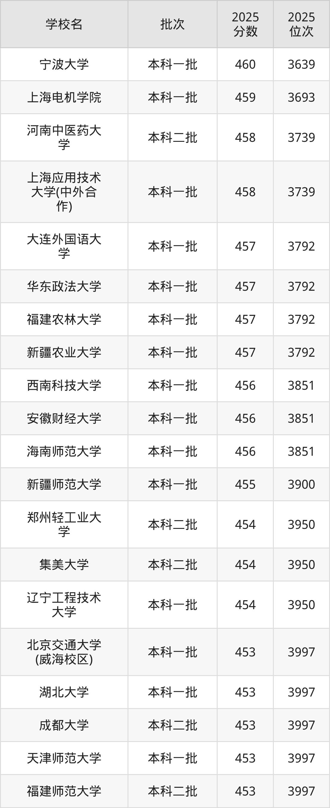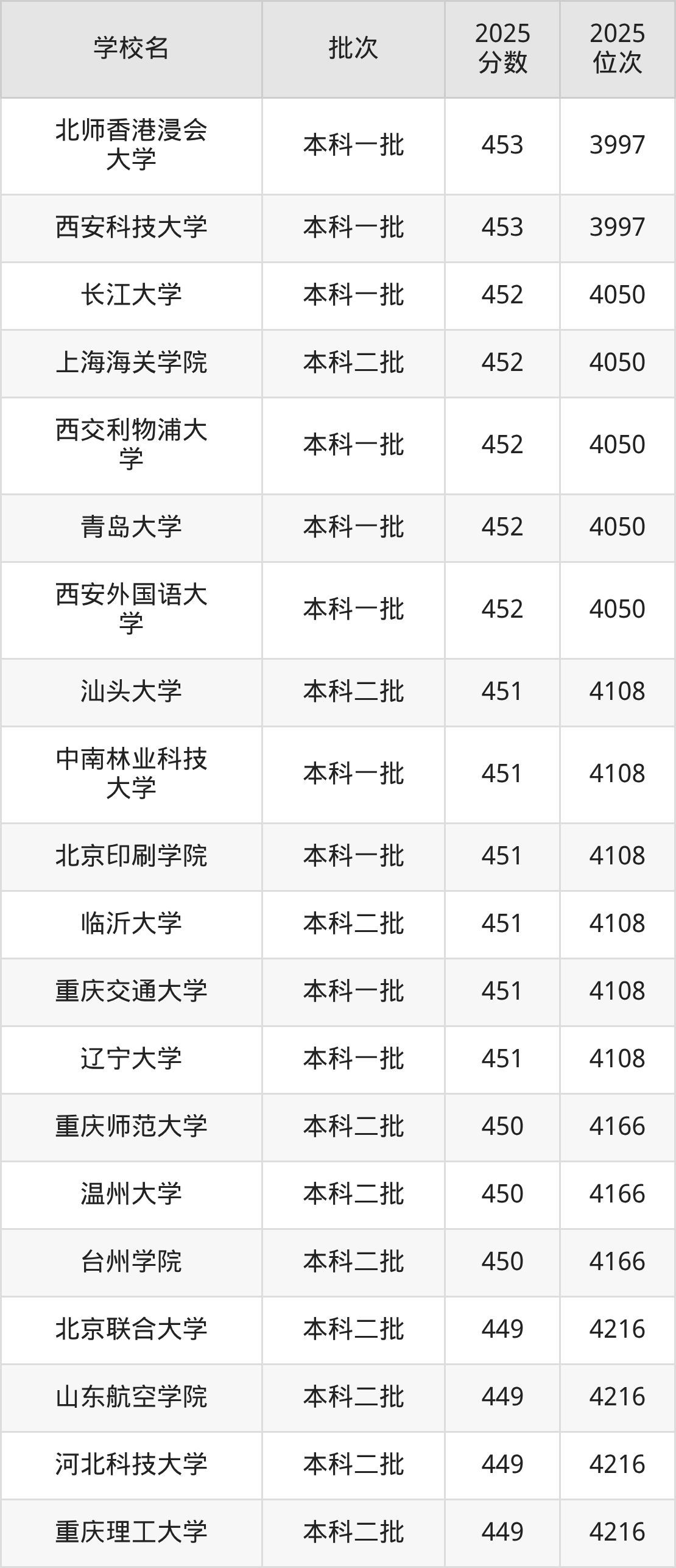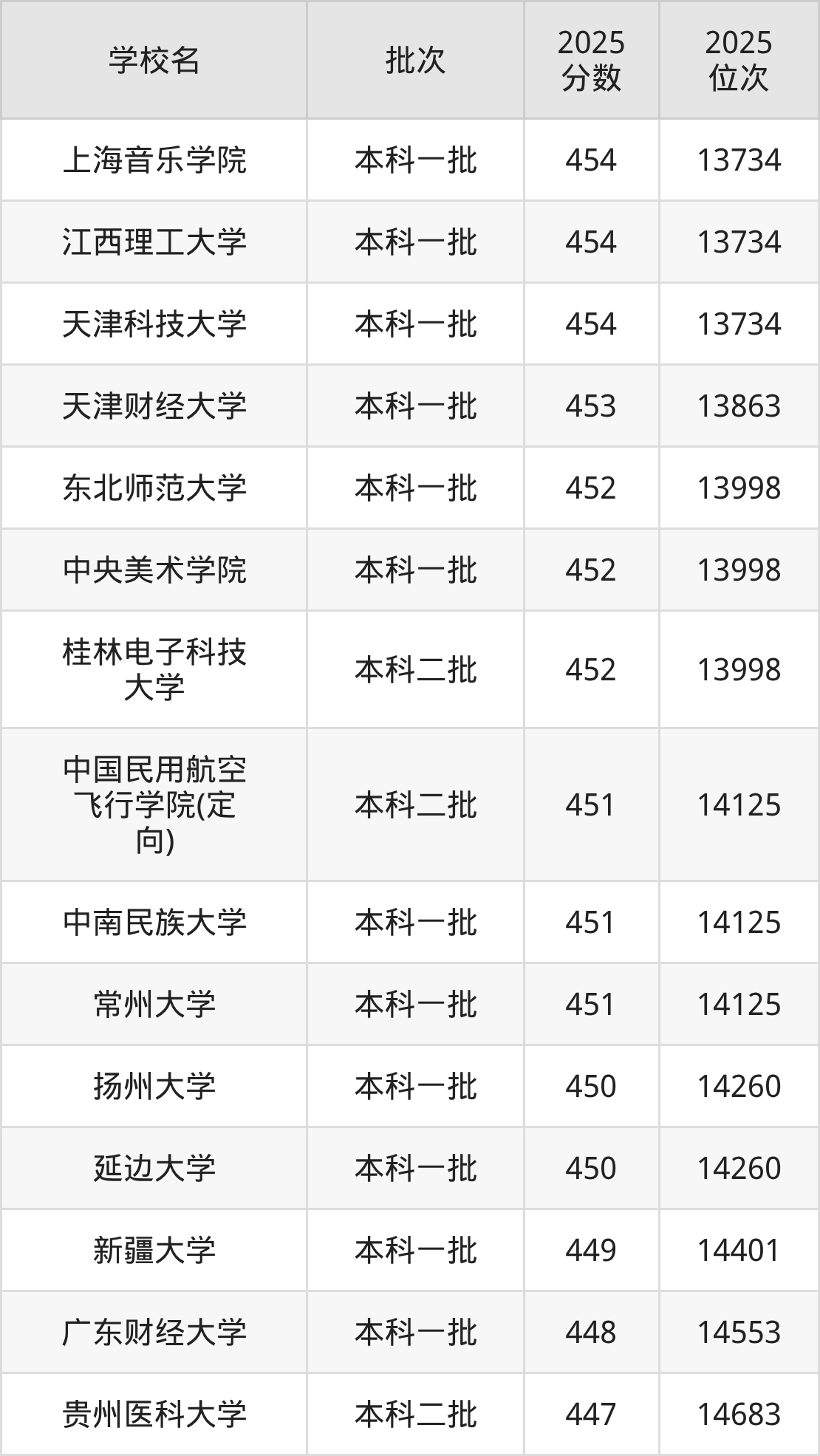 2025年新疆高考理科450分(14126名~14260名)能上的大学有延边大学、扬州大学。