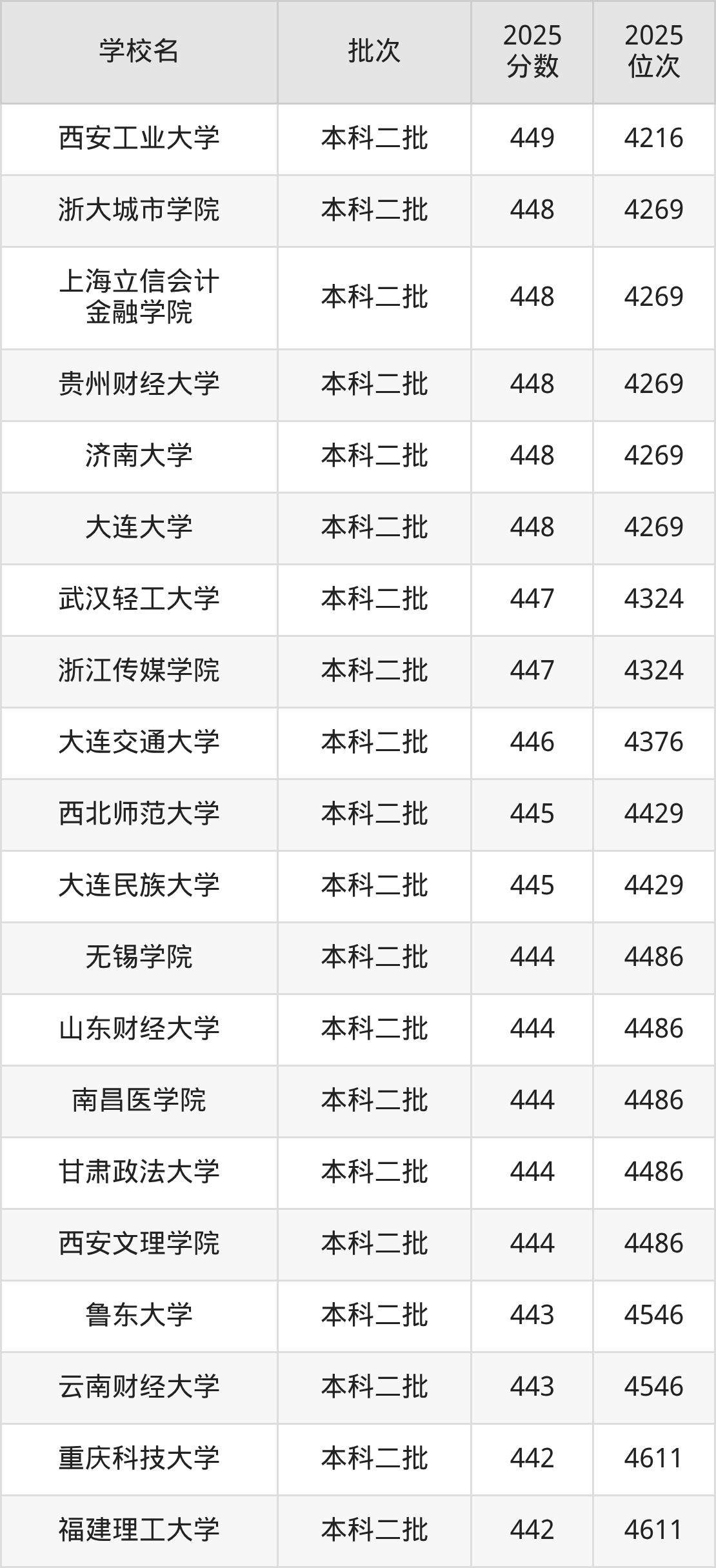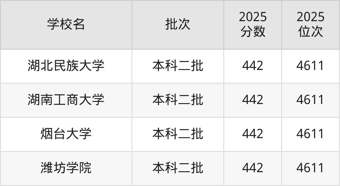 这些都是2026年高考文科4109名~4166名考生可以报考的大学,更多学校名单如下表所示: