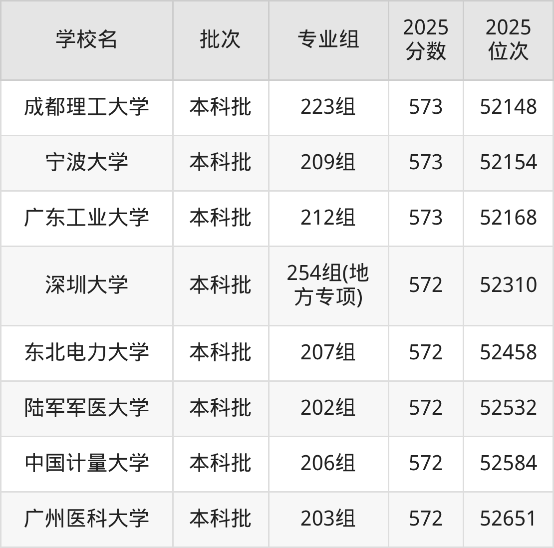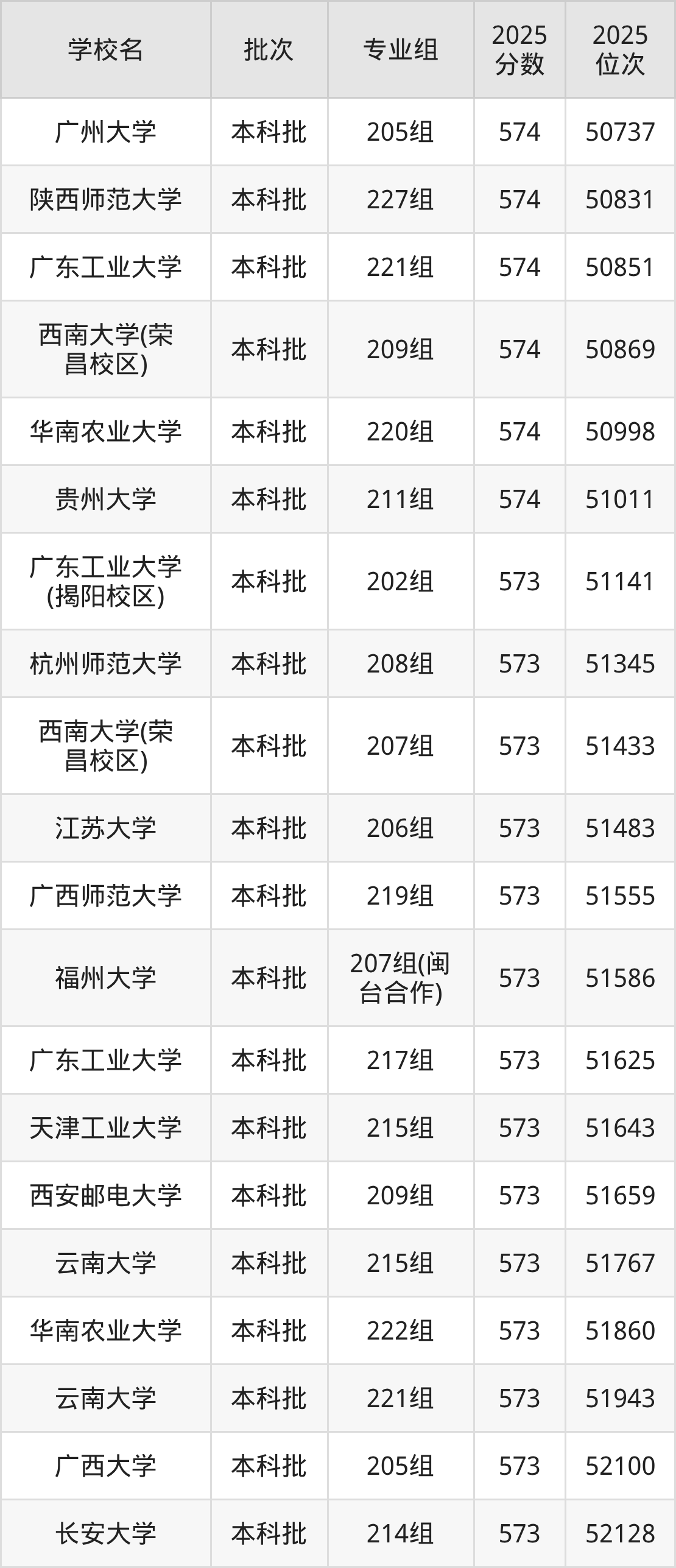 二、广东573分位次排名能上的大学