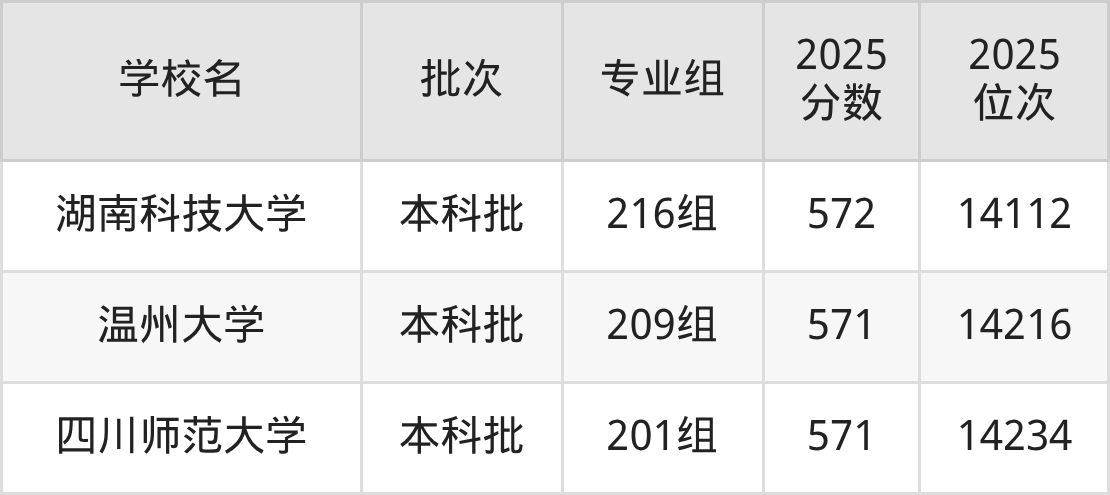 这些都是2026年高考历史类13404名~13763名考生可以报考的大学,更多学校名单如下表所示: