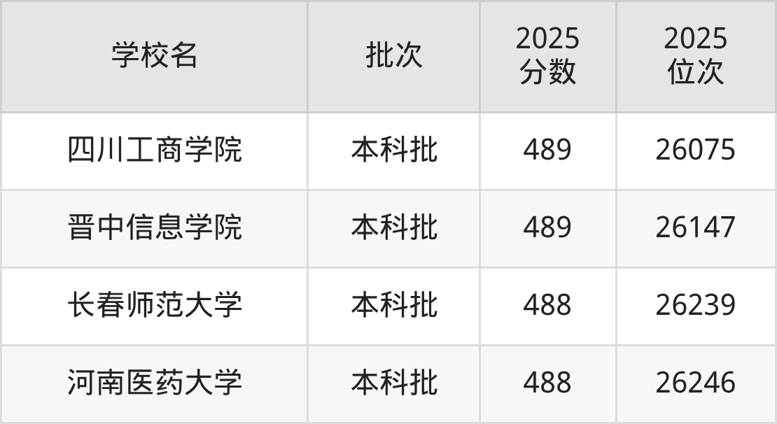 这些都是2026年高考历史类25380名~25773名考生可以报考的大学,更多学校名单如下表所示: