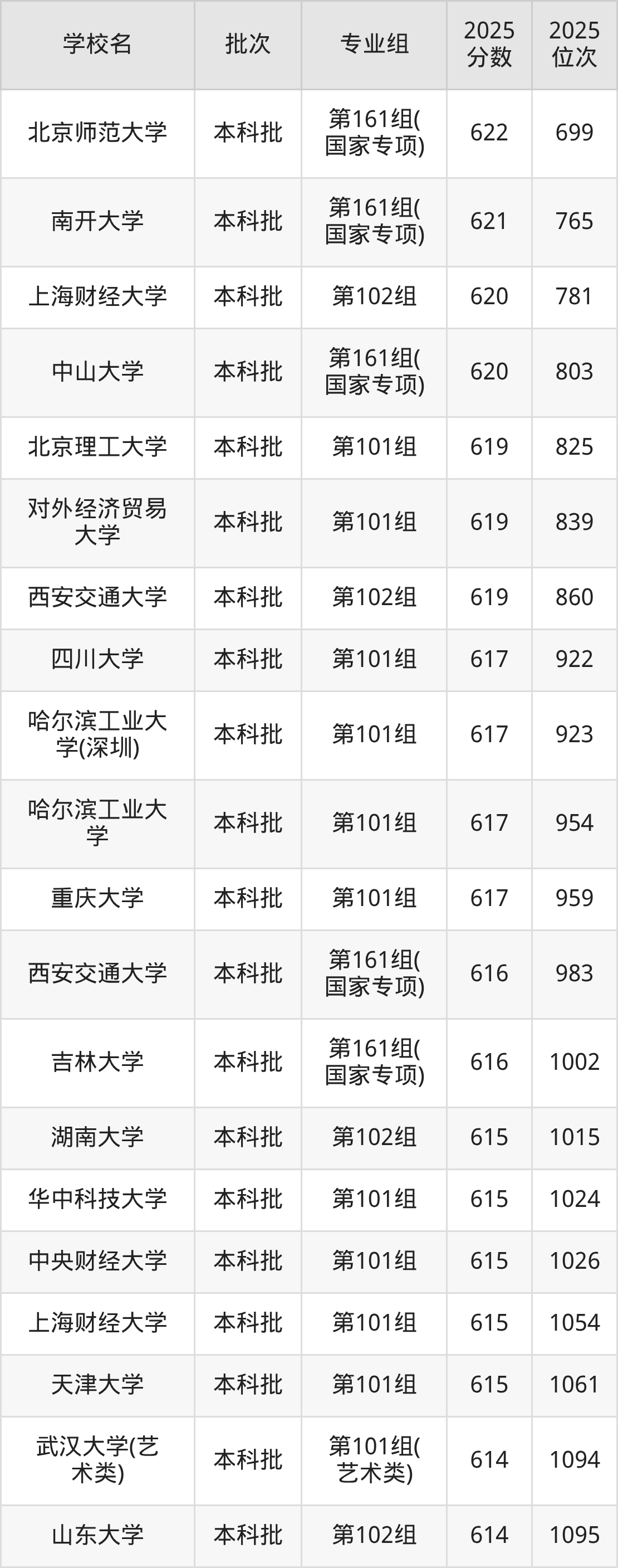 2025年江西高考历史类622分(671名~715名)能上的大学有北京师范大学第161组(国家专项)。