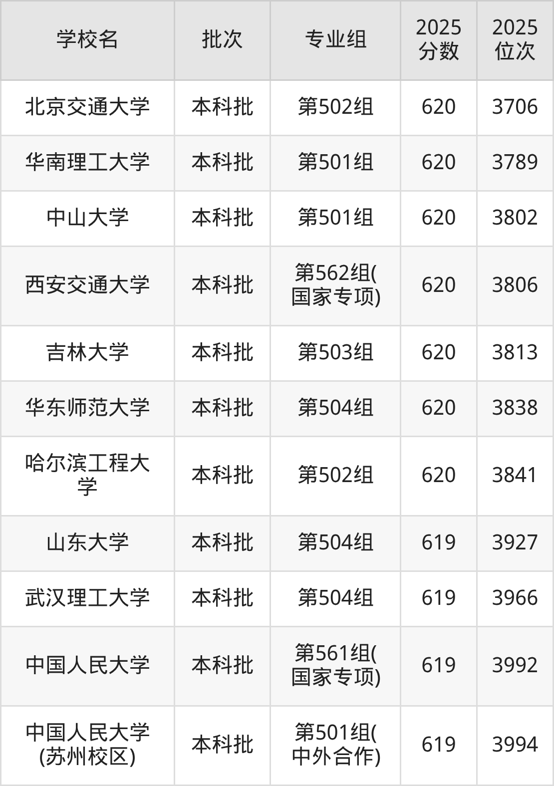 另外录取位次低于该区间(较稳妥)的有电子科技大学第501组(3625名)、苏州大学第503组(3663名)等;录取位次高于该区间(可冲)的有浙江大学第502组(农林类组)(3301名)、电子科技大学第561组(国家专项)(3210名)等。
