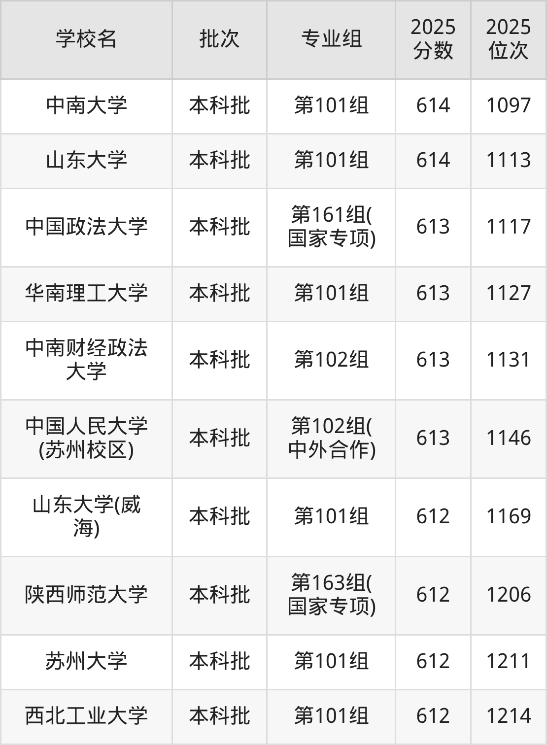 由于高考录取分数线历年波动较大,因此本文以该分数对应的位次排名为大家整理能上的大学名单。