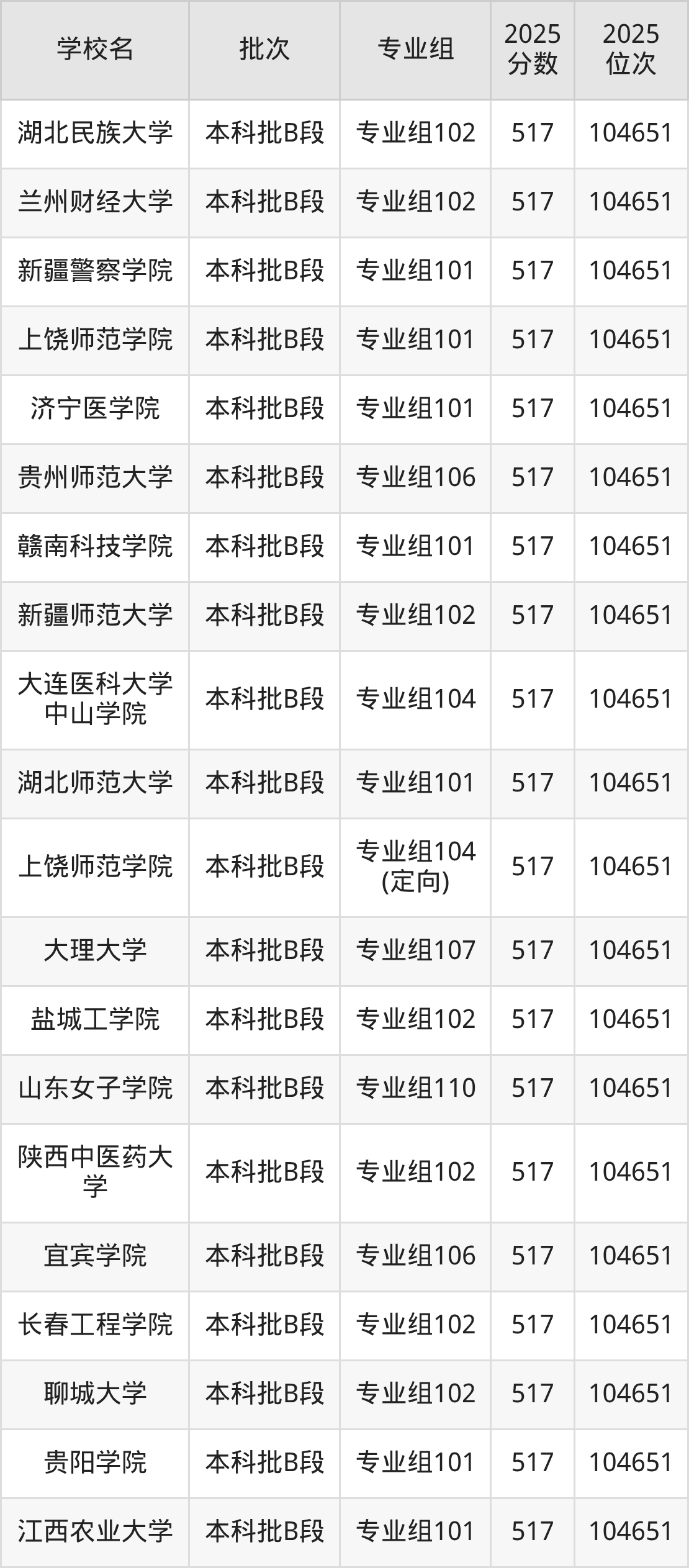 这些都是2026年高考物理类103352名~104651名考生可以报考的大学,更多学校名单如下表所示:
