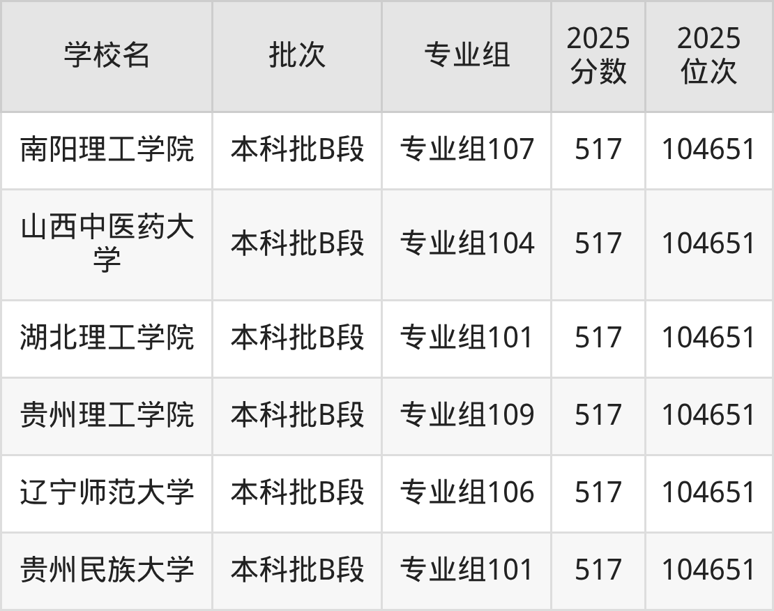 2025年四川高考物理类517分(103352名~104651名)能上的大学有贵州理工学院专业组109、辽宁师范大学专业组106、贵州民族大学专业组101、山东女子学院专业组110等。